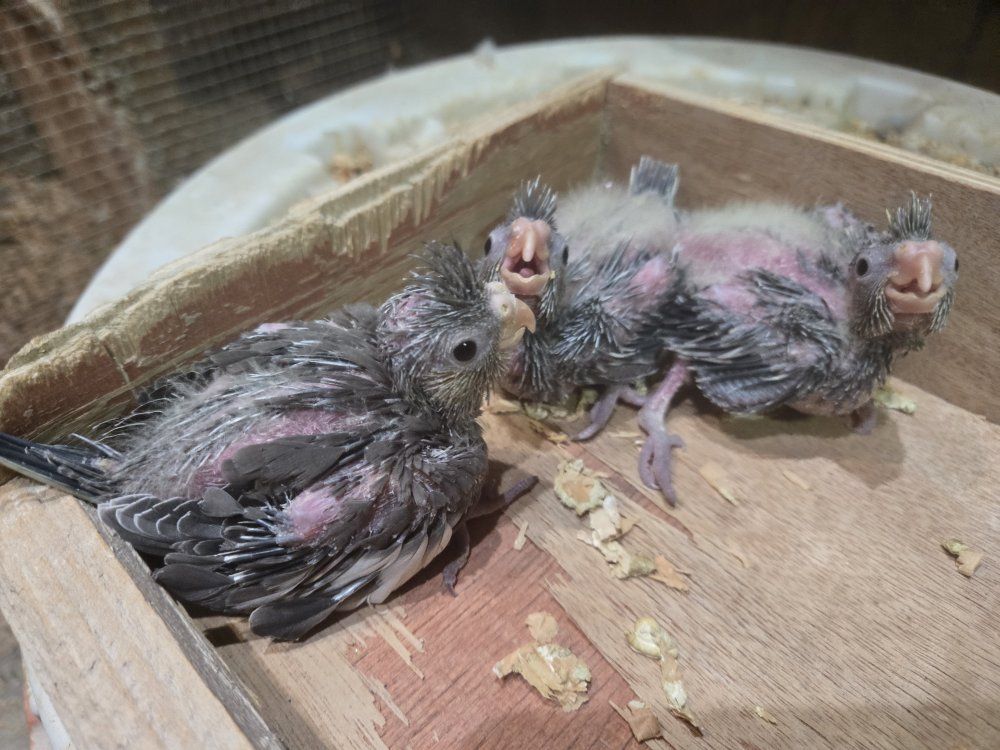 I have this 3 baby cockatiels ready for hand feeding. They are 3 1/2 weeks old. they are doing great. 150.00 each