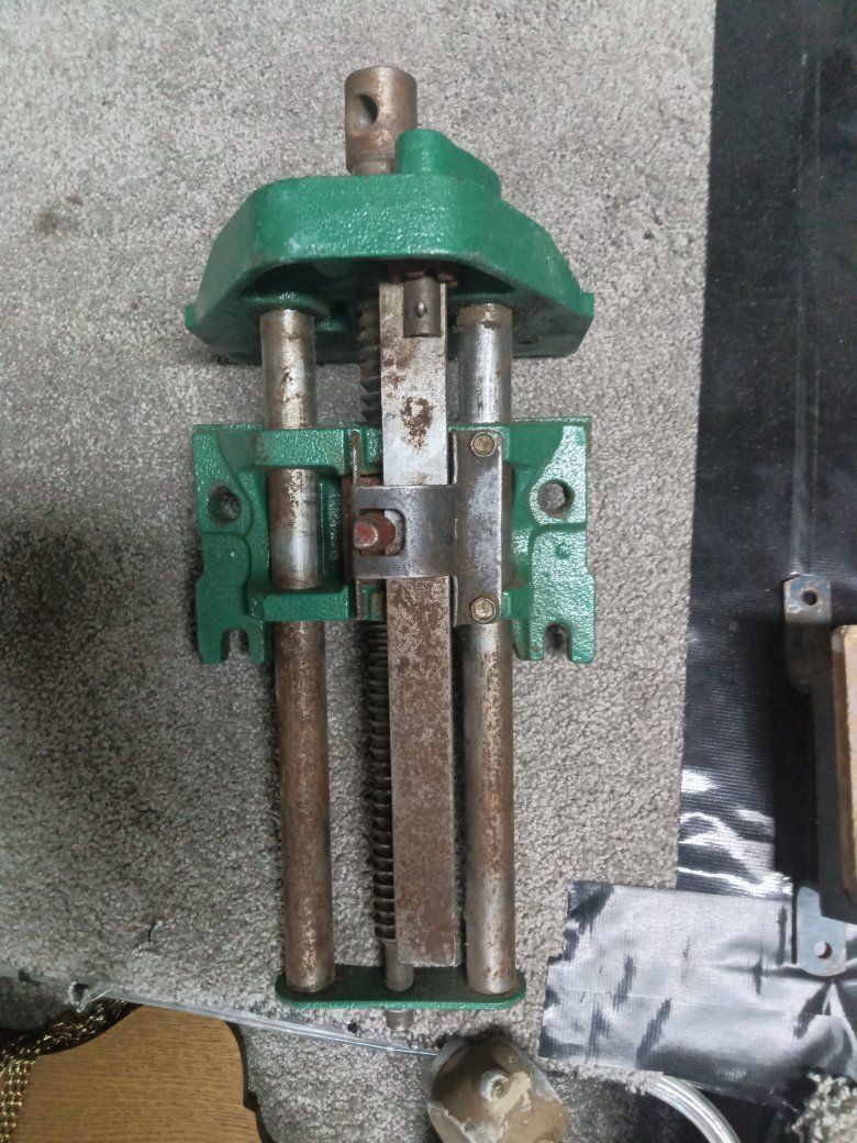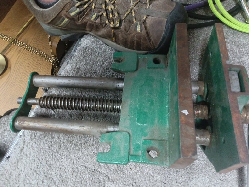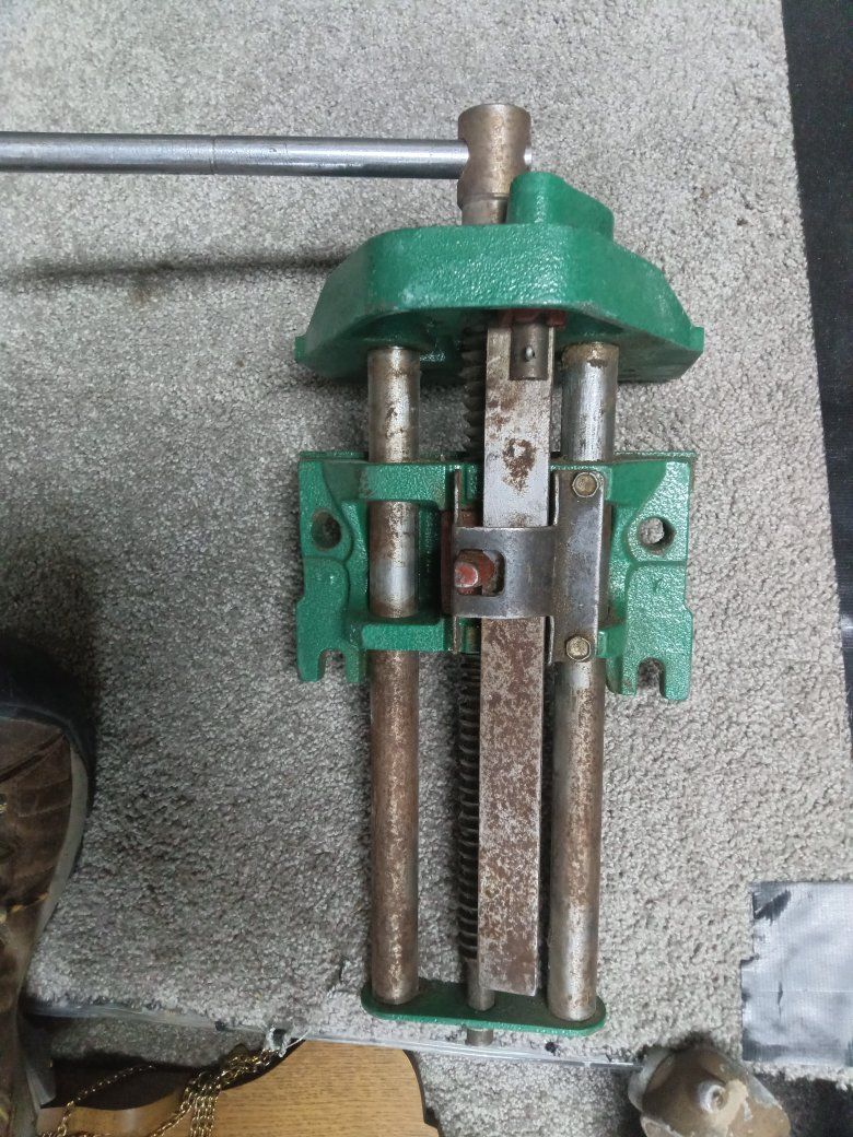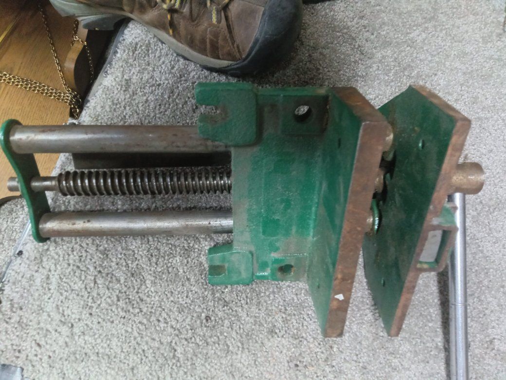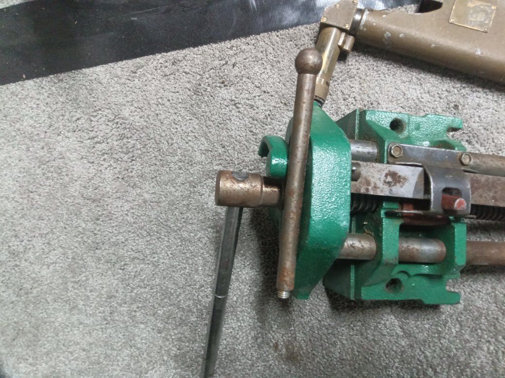 this is an older vintage made in China but it is not garbage made like currently being produced this is a good high quality made vice everything works as it should the original handles missing the screw on and to keep it from falling out the original handle included as well as another one that works well!