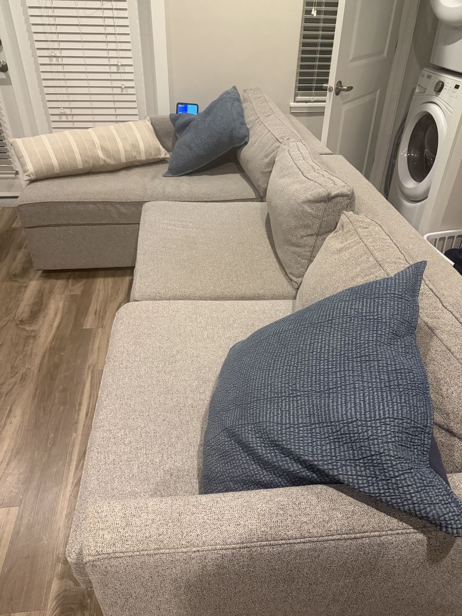 VenmoI’m moving and can’t bring my couch. Nice grey couch, the long part opens up for storage. Can separate it in two.