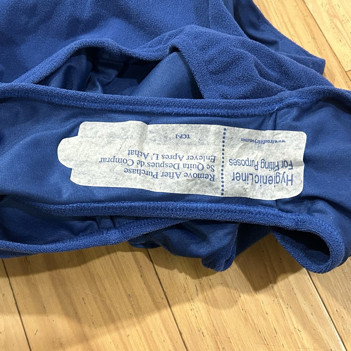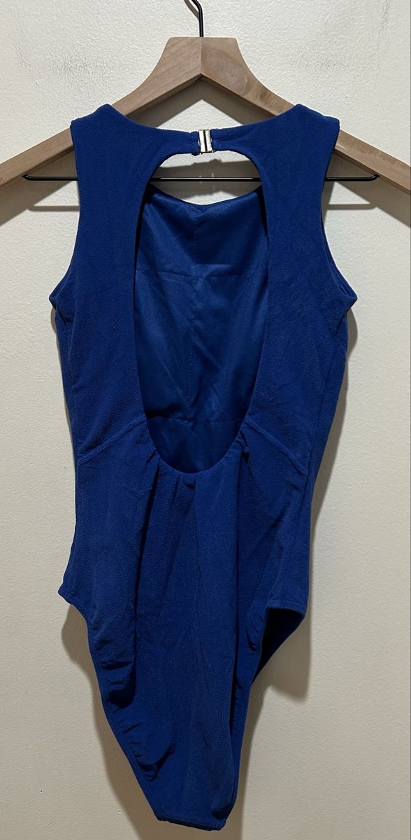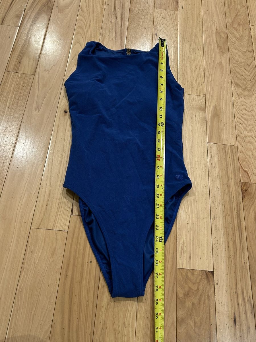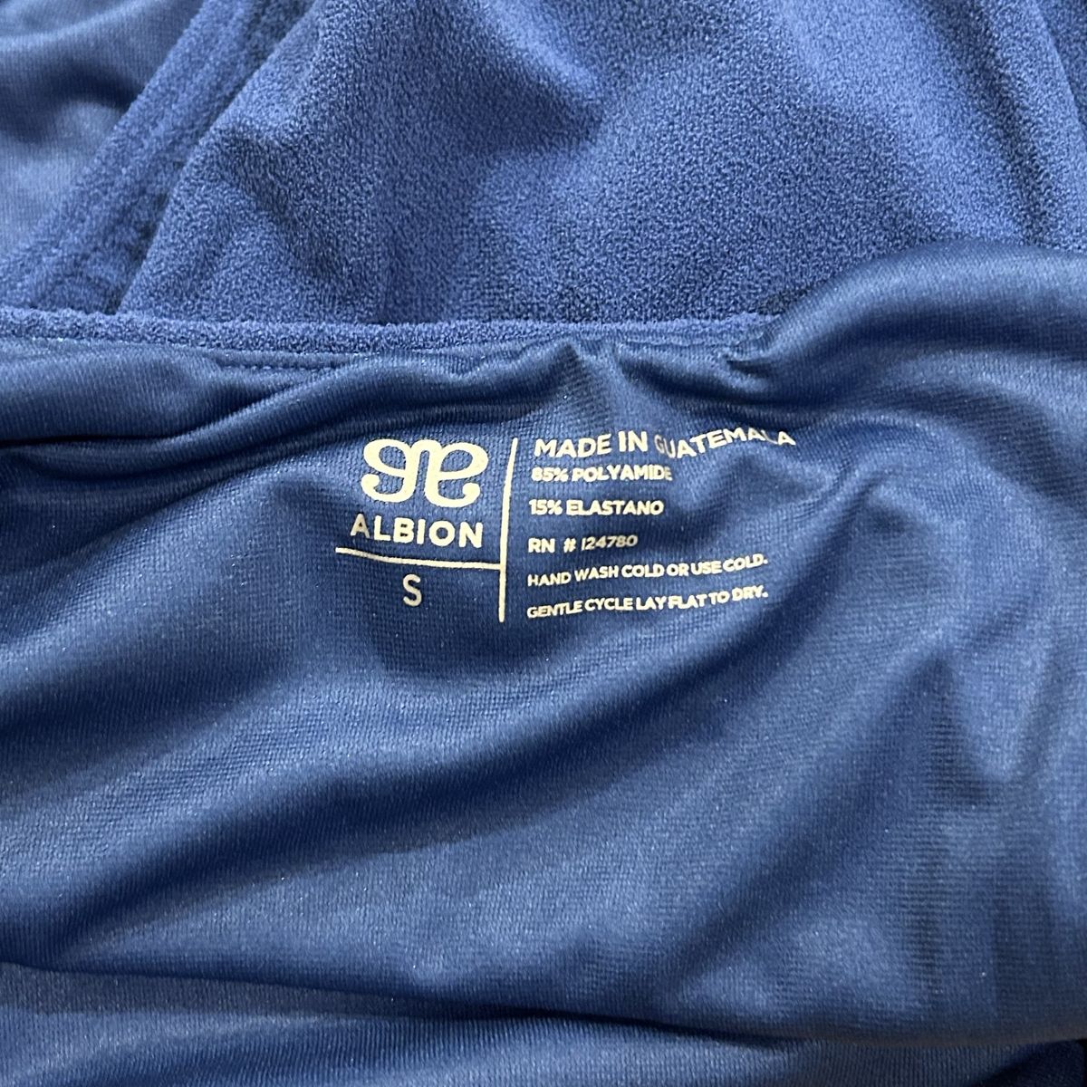 Albion NWOT The Pearl One Piece Swimsuit in Navy Terry Blue - Women’s Size Small - high neck line, open back, fully lined, lush navy terry material, and with removable pads - brand new without tags. MSRP $148.00.