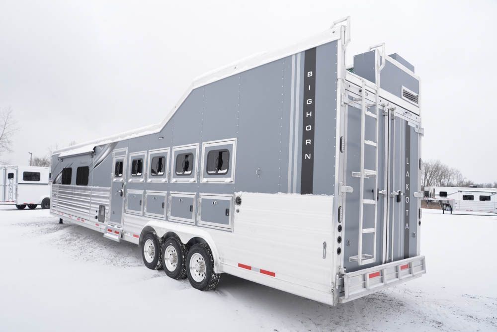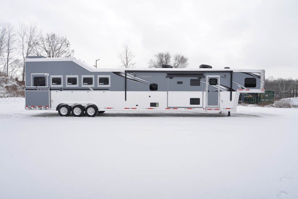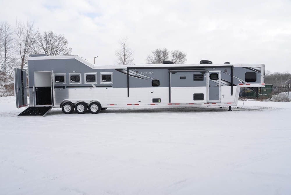 Barely used — only 8 times! Still smells brand new inside and out. We’re upgrading to a motorhome and this beauty needs a new home. Key Features: • Double pop-outs/slide-outs for the largest living space possible in a horse trailer • Spacious 19’ living quarters with full kitchen, bathroom, huge entertainment center, and luxury wood cabinetry • Custom bunk beds just installed — sleeps 5-6 people comfortably (perfect for the family!) still have couch if you would rather have that. • Hauls 5 horses safely (side-load configuration with full rear tack) • High-end Lakota Bighorn construction — all aluminum, triple axles, premium tires/wheels • Beautiful gray/silver exterior with modern graphics • Largest propane tanks made for RV’s This is a rare, top-of-the-line rig that turns heads everywhere. Used for high school rodeo— no heavy hauling or wear. Everything works perfectly and it’s turn-key ready. Serious buyers only — cash or verified financing. Can help with delivery arrangements. $185,000 OBO DM me for more photos, video walk-through, or to schedule a viewing.