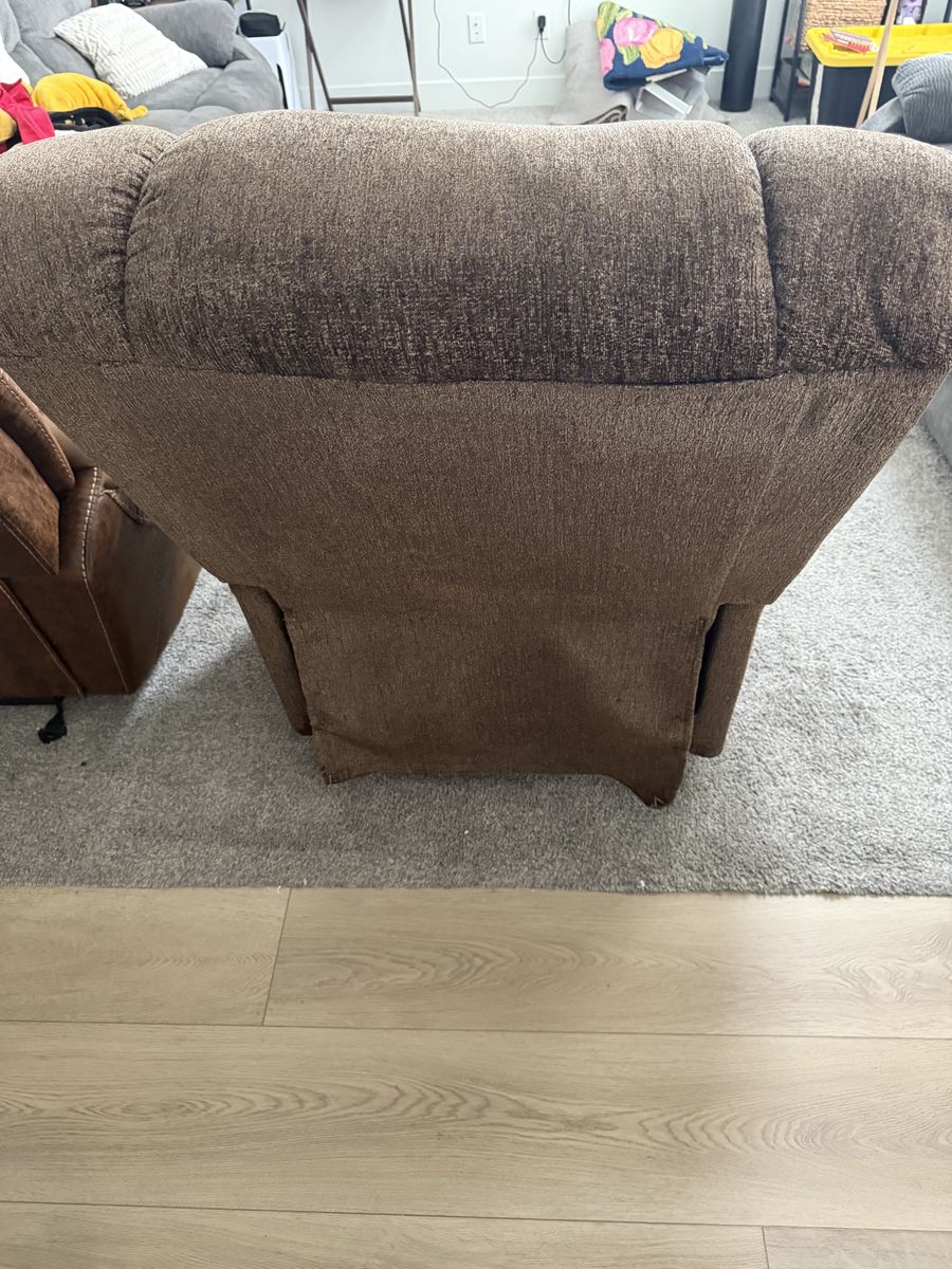 ApplePaySelling a beautiful, oversized brown recliner that is perfect for relaxing or napping. We’ve only owned this for a couple of months, but we are clearing space for a new living room set. It is significantly larger and more comfortable than a standard recliner!