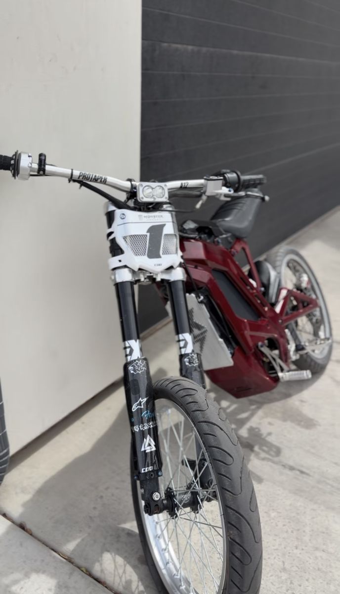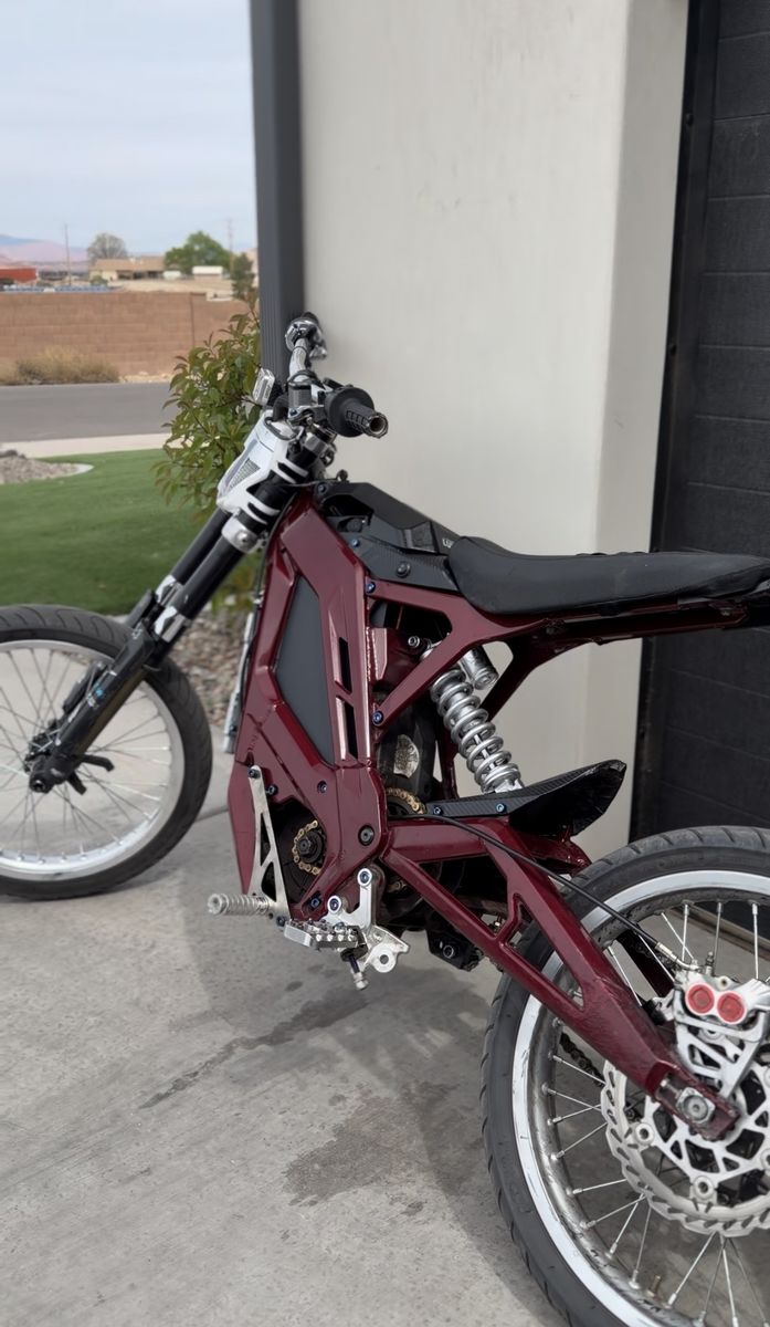very low miles under 1000 bike parts full titanium kit 350$ volar sport 550$ 16/19 red pc (bent ez to bend back) fast ace tuned forks 1050$ powder coat 500$ super motos 500$ direct mount 60$ direct mount riser 50$ pro taper bars 100$ egg rider display 80$ warp 9 pegs 100$ wave motorsport pegs 80$ vented plate 140$ fake baja 40$ fork polish job 50$ (+labor) titanium rotor bolts 20$ warp 9 light switch 40$ guts seat cover 80$ peg mount 50$ belt cover 40$ w9 sprocket (48t) 50$ foot brake (not working) 120$ aw foot lock 70$ grips 20$ donuts 10$ surron throttle 80$ triple clamp bolt 40$ wire mesh 15$ carbon wrap 10$ key ignition 40$ black titanium jackshaft bolt 80$ moto chain 40$ motorcycle chain for chain drive 90$ chain drive 100$ silver kickstand 50$ batt wrap 25$ vented plate 125$ fork guard stickers 35$ ext sticker 18$ also comes with extra parts such as most stock parts, rotors, sprockets