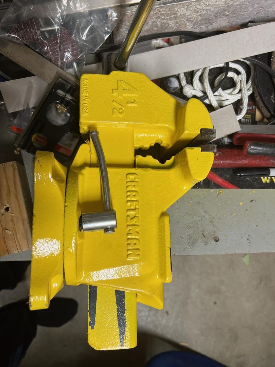 Stand alone Vice (vise) with stand. Craftsman vise 4 1/2" jaws. Made in USA. Bottom has a rubber mat. Good condition. Stand is newly made. Full of steel and concrete. Estimated weight 150 Pounds. Asking $190.00. Text or call 801-706-2901