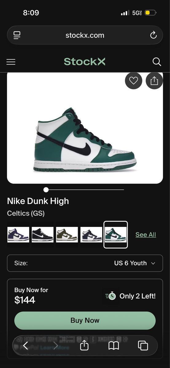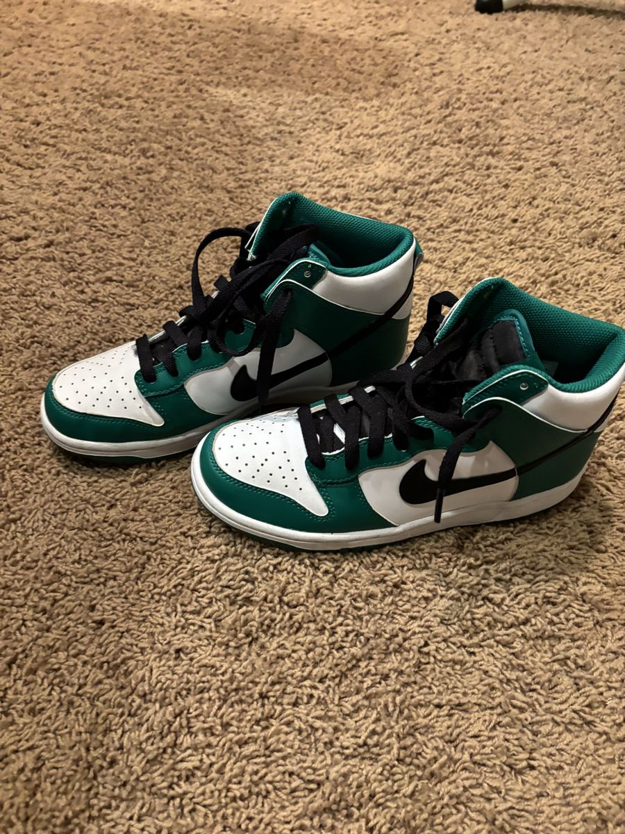 VenmoNike dunk high, Celtics green size 7. Green, black and white. Great condition. Youth size 6.