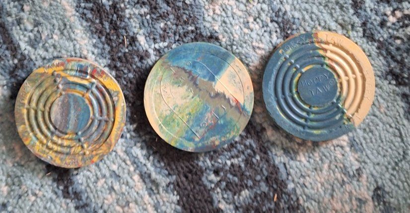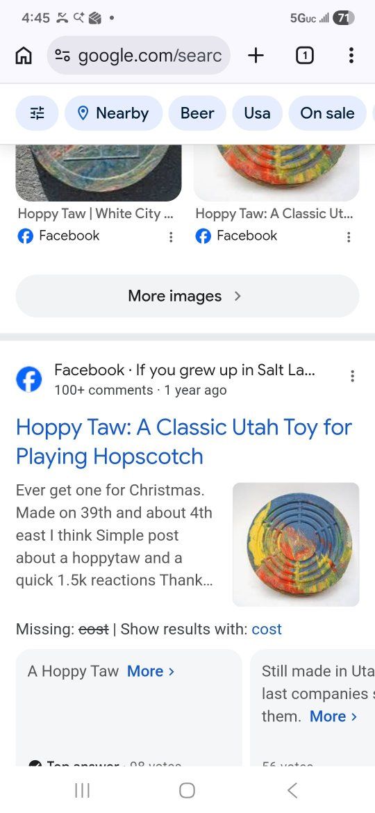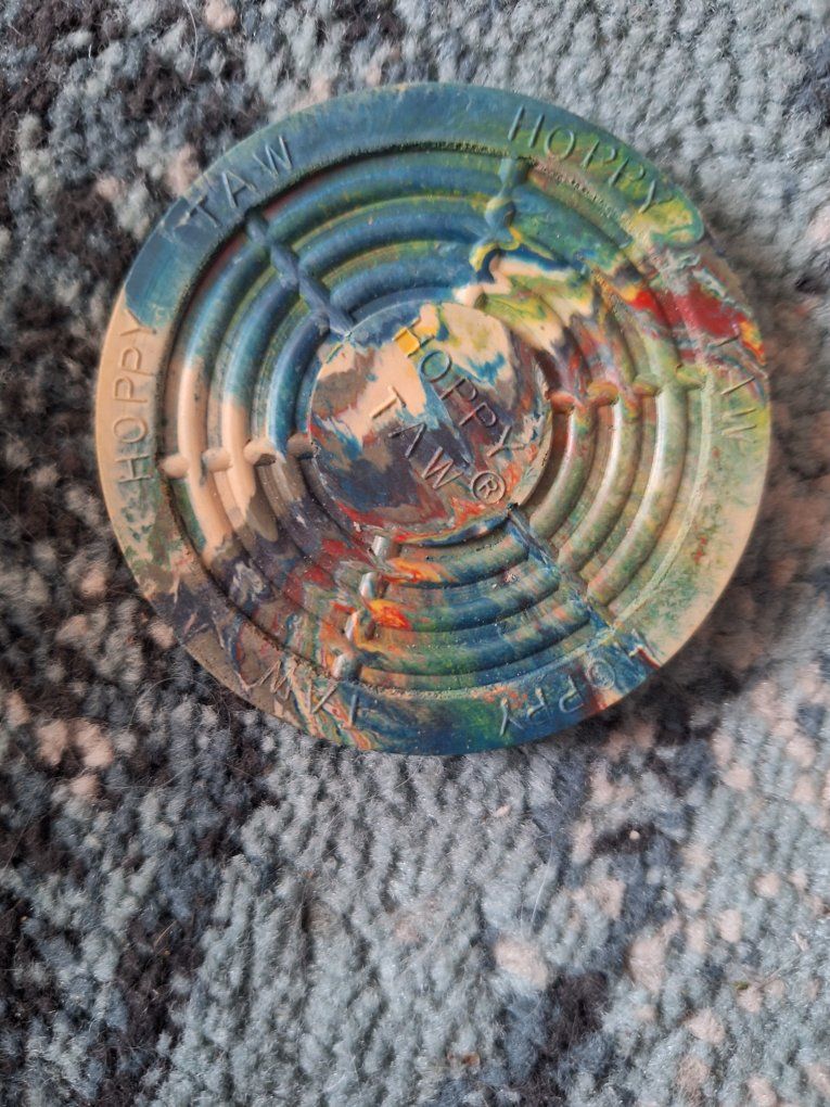 Hoppy Taws are durable, rubber discs used as markers for playing hopscotch, designed to replace rocks or sticks since 1953. Originating in Utah, these 2.5-inch markers are designed to land, stay put without bouncing, and prevent injuries. They are often used in classic, competitive, or varied hopscotch games.