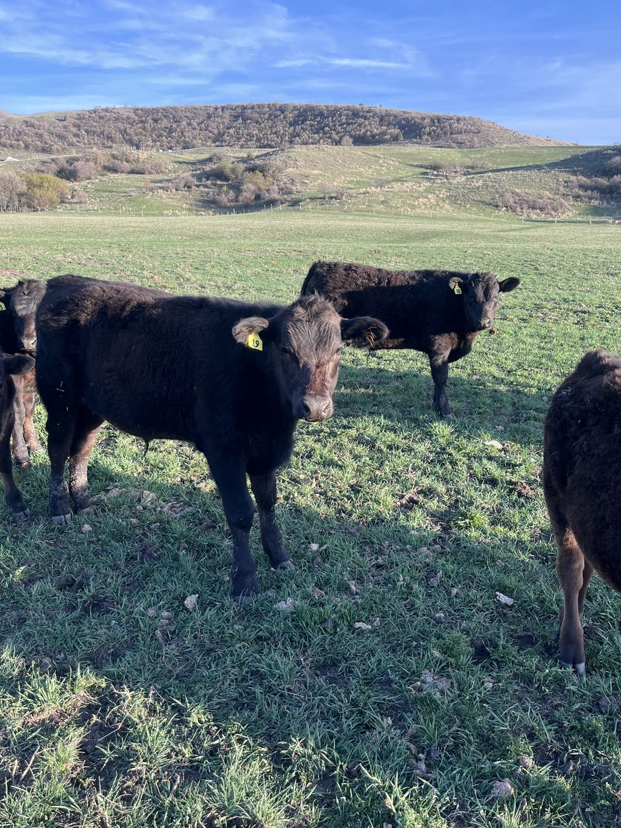 Last chance going to auction next week. Black Angus/Wagyu steers for Sale. Born in August 2025. Been on the 100 acre pasture seen in the photos. Also have had unlimited access to Alfalfa and grass hay mix over the course of the winter. Vaccinated and healthy. You get the benefits of the Angus with the outstanding marbling of the Wagyu. Call with any questions 435-640-2988.