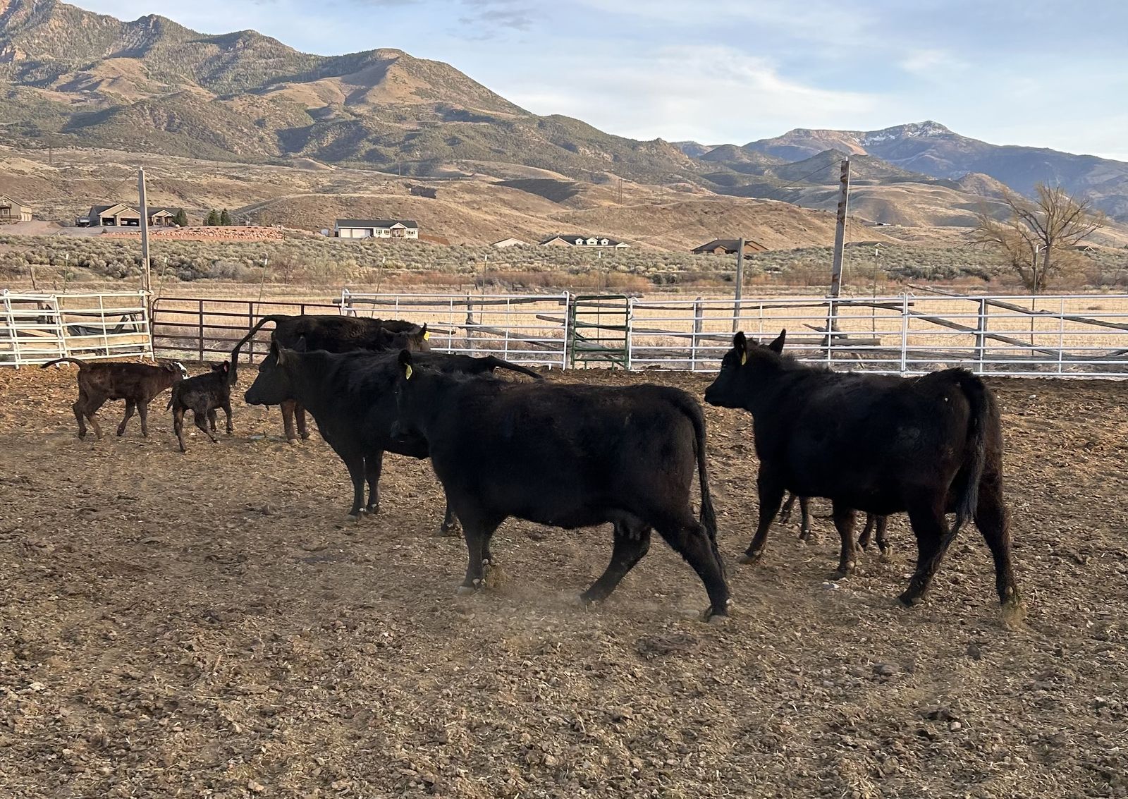 Young pure-bred Angus with crossbred calves. One heifer with her first calf, two with their second calves, and two with their third. Perfect condition, only selling to reduce my herd number. Serious inquiries only.