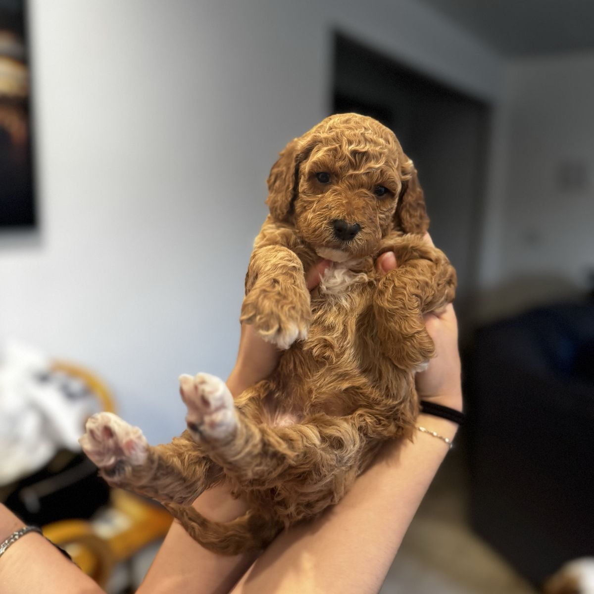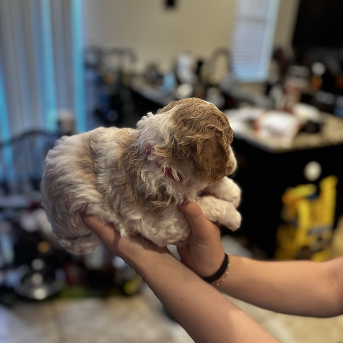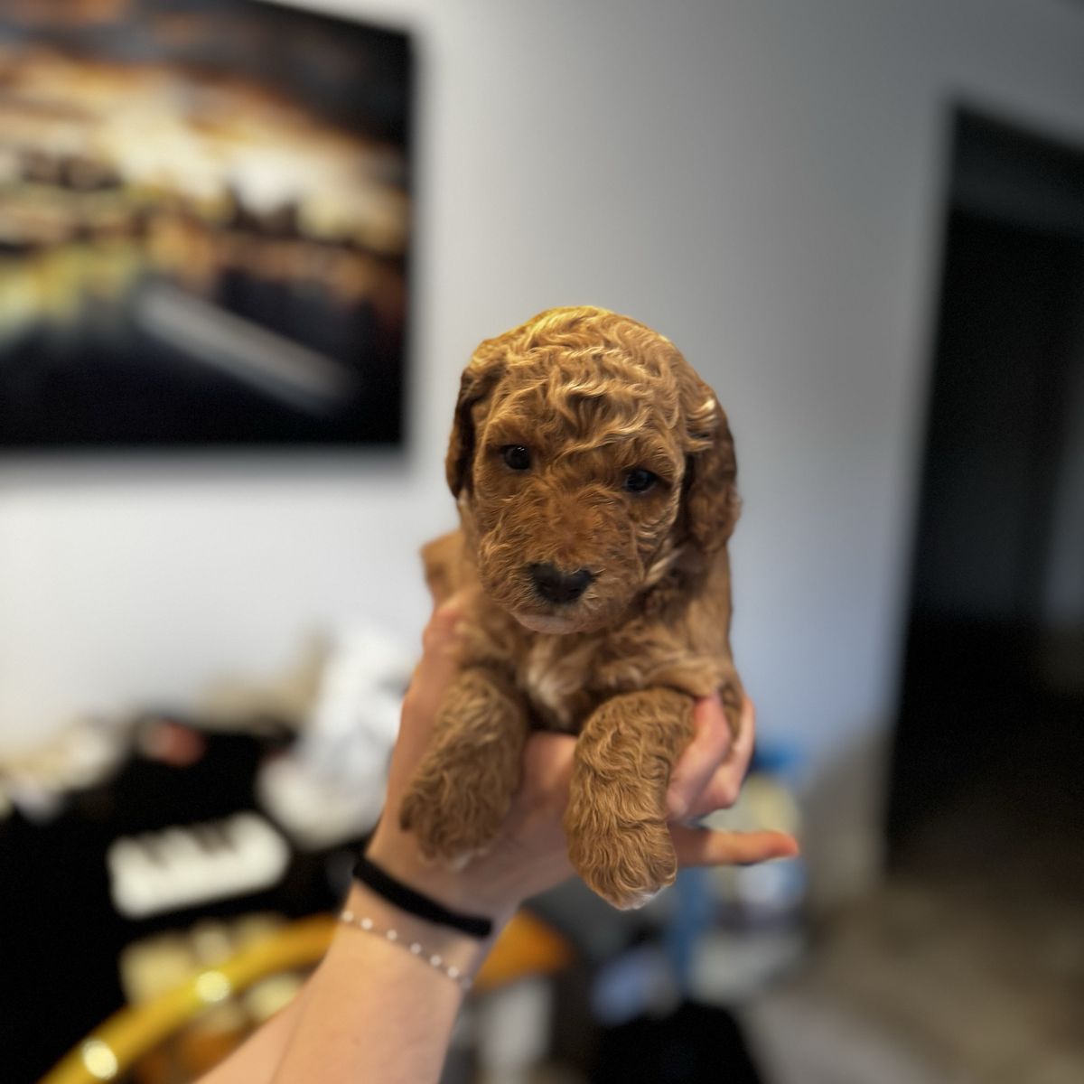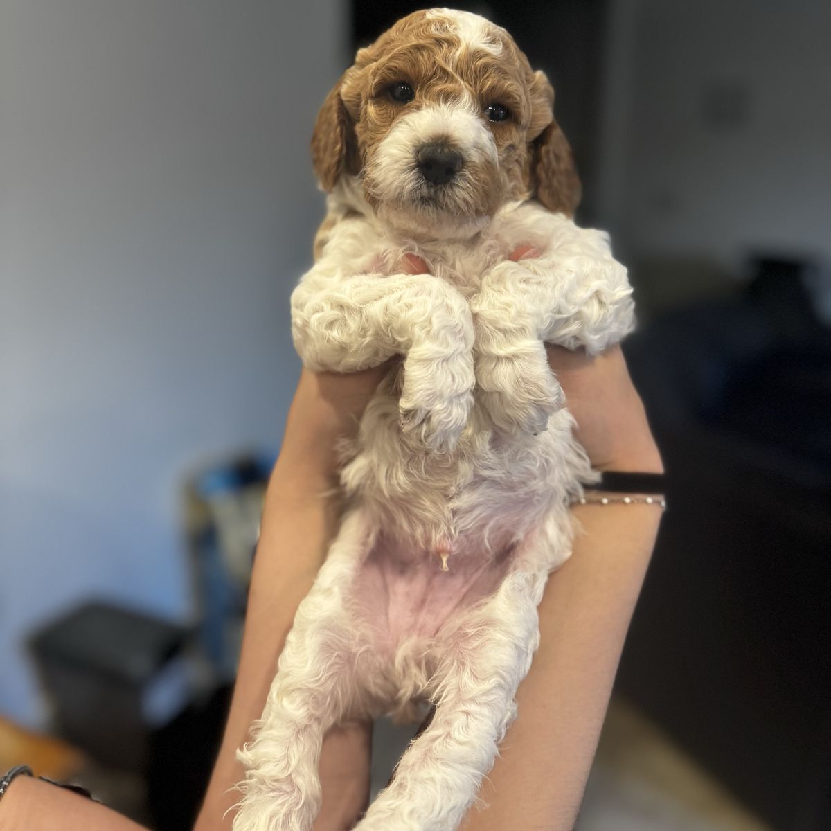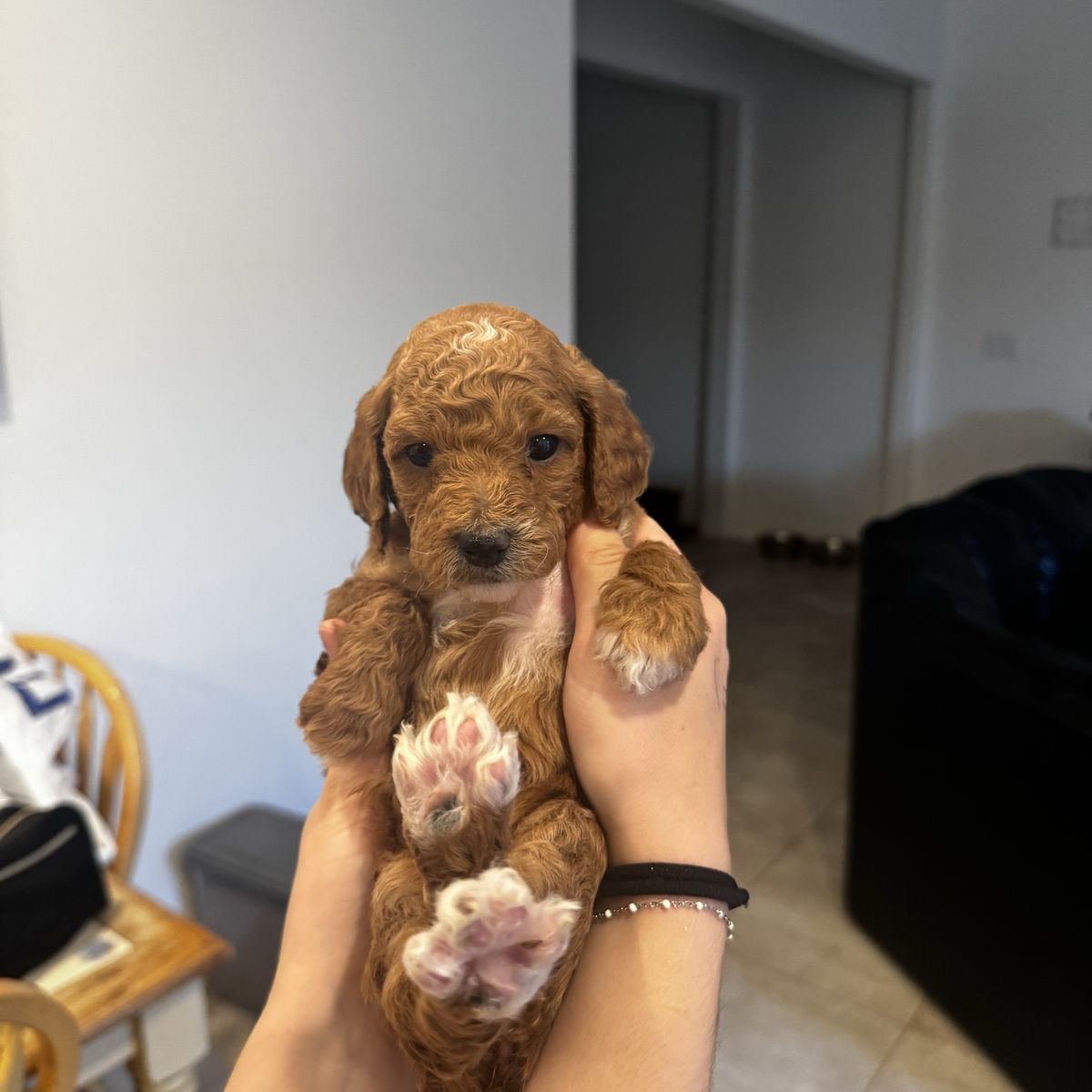 4 female and 4 male dogs. These are hypoallergenic dogs, and they are expected to be smaller/medium size. Reach out to meet puppy’s or put down a deposit towards one of the puppies.