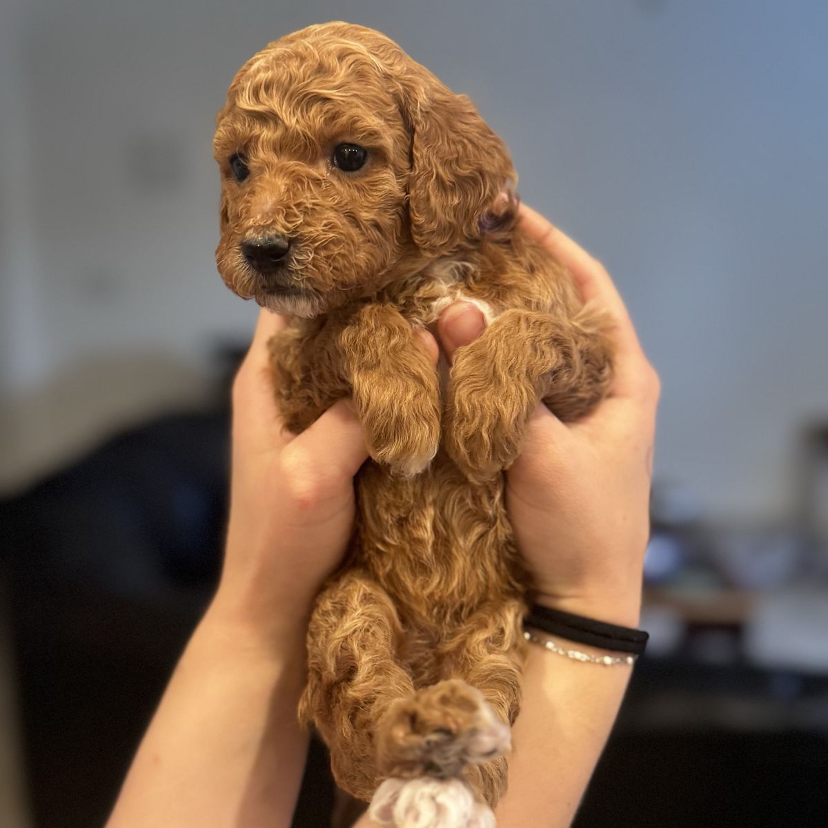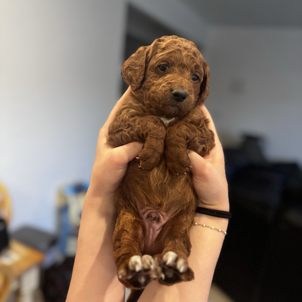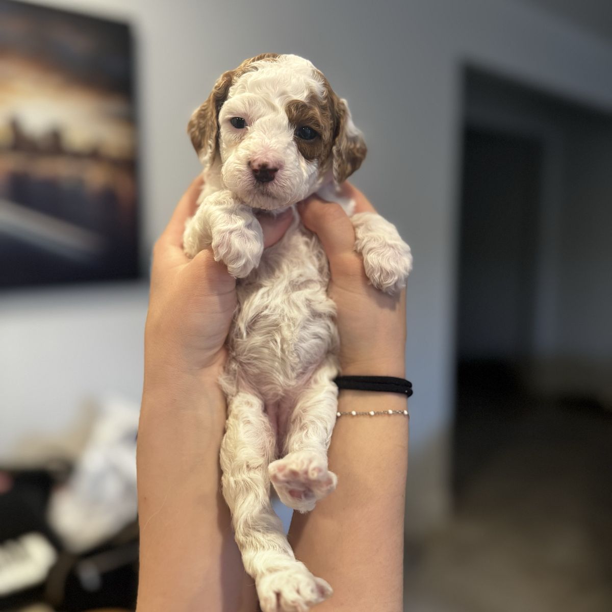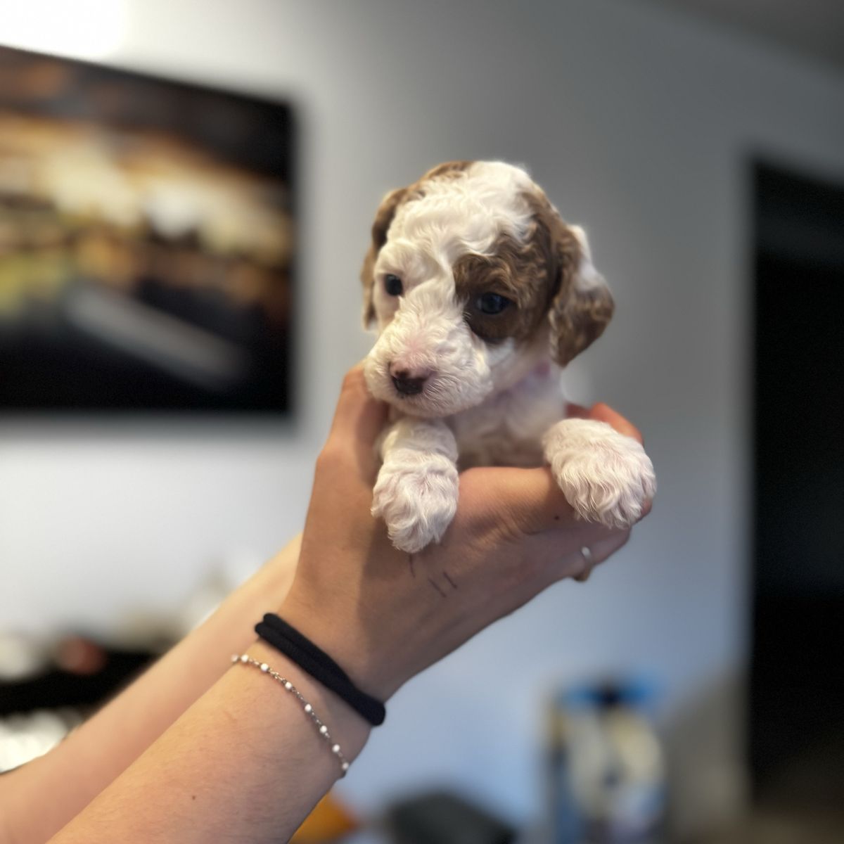 4 female and 4 male dogs. These are hypoallergenic dogs, and they are expected to be smaller/medium size. Reach out to meet puppy’s or put down a deposit towards one of the puppies.
