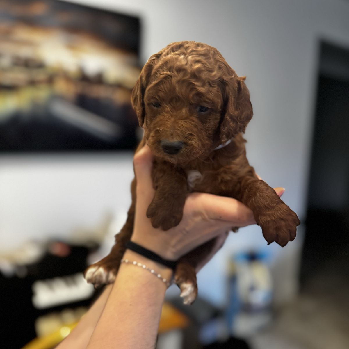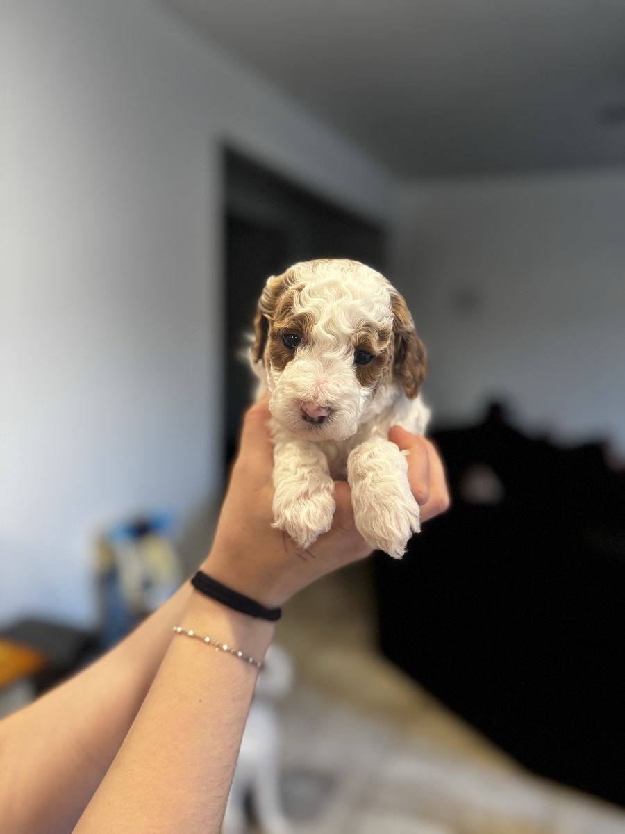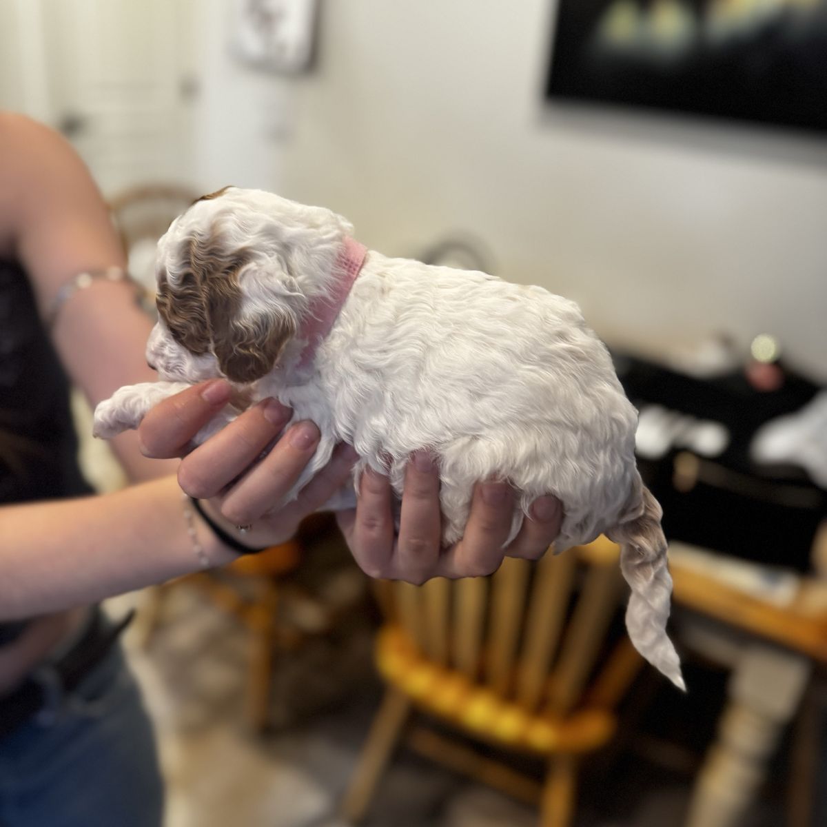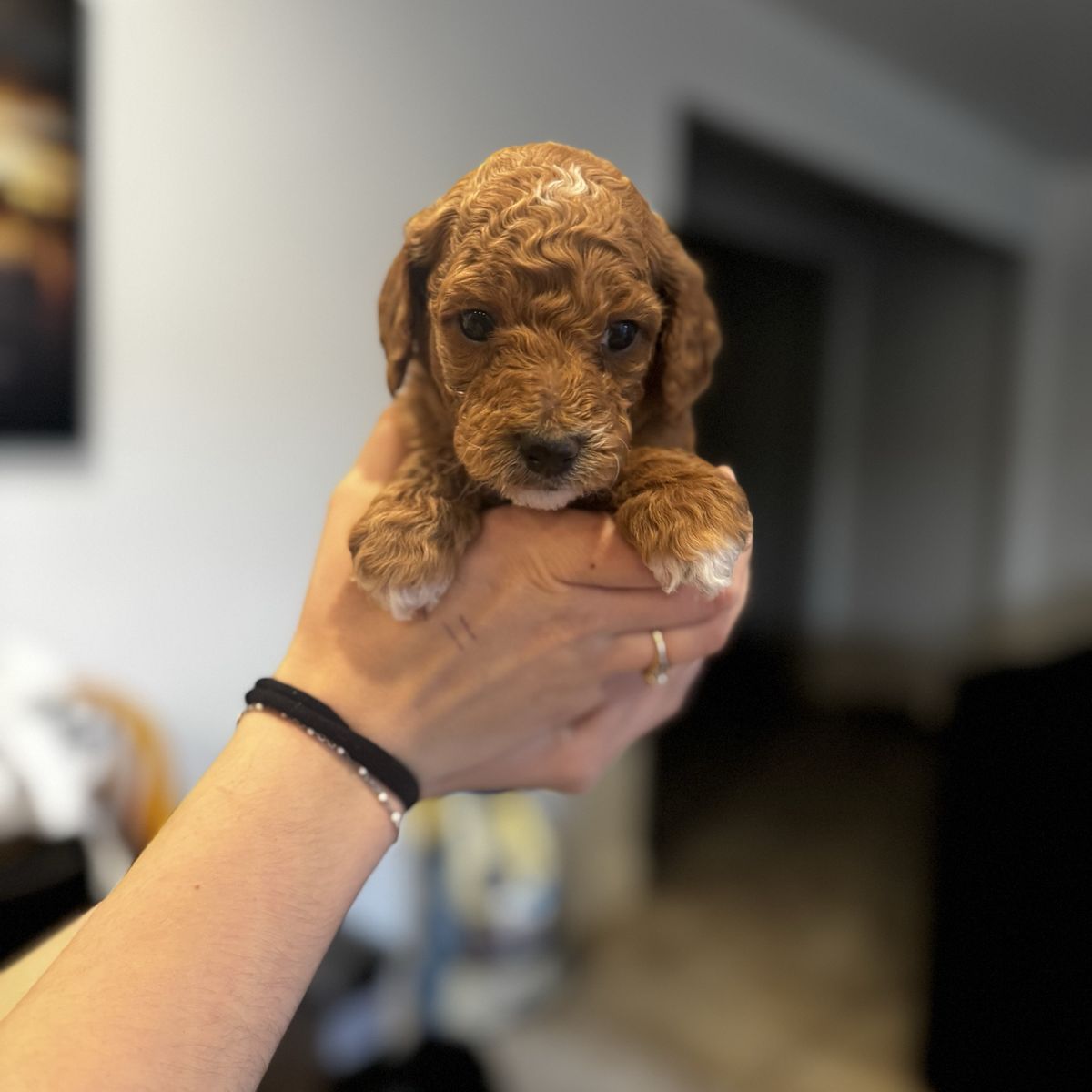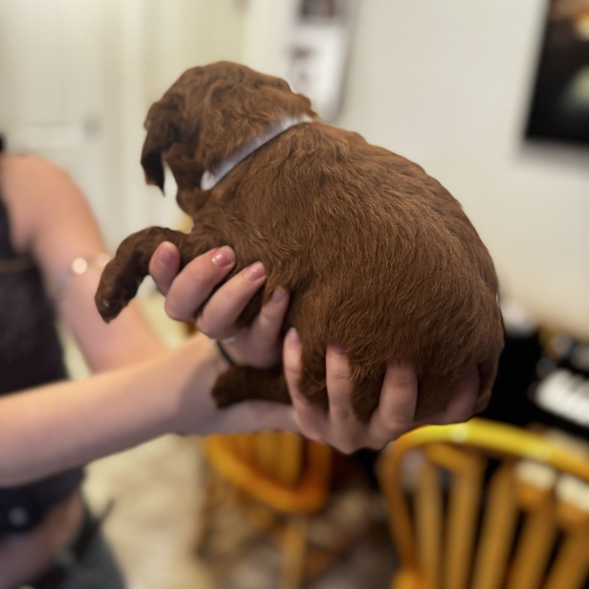4 female and 4 male dogs. These are hypoallergenic dogs, and they are expected to be smaller/medium size. Reach out to meet puppy’s or put down a deposit towards one of the puppies.