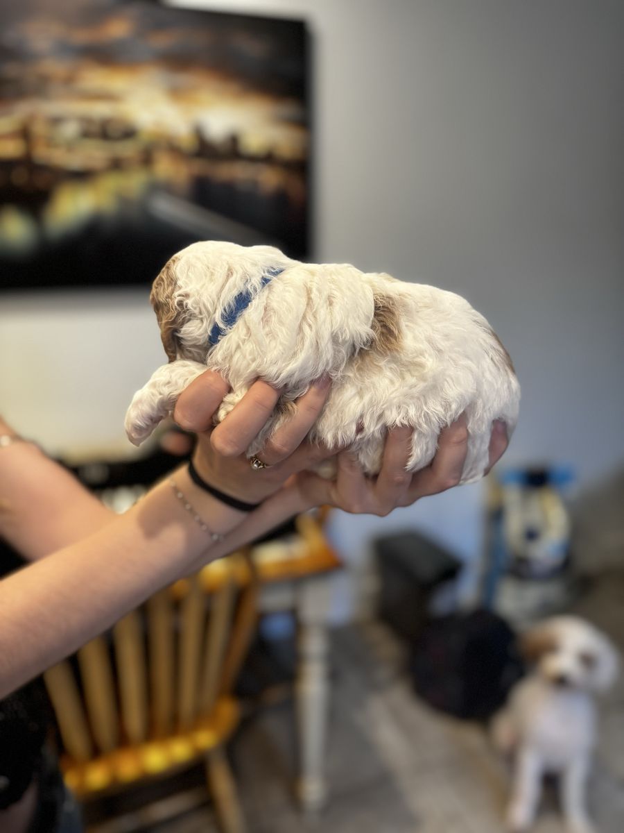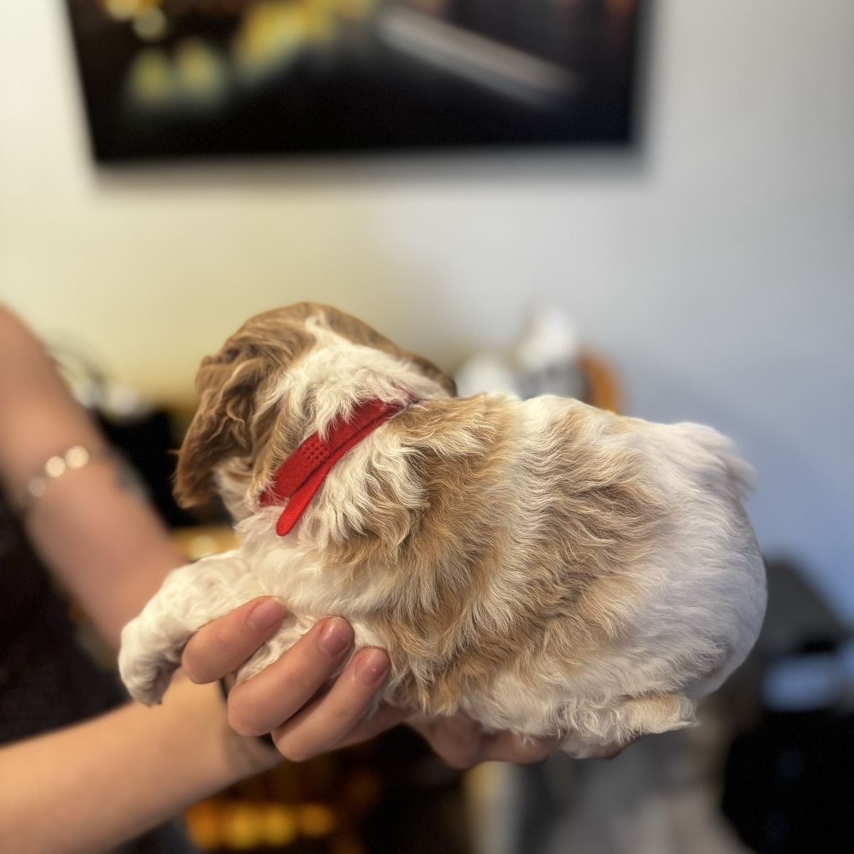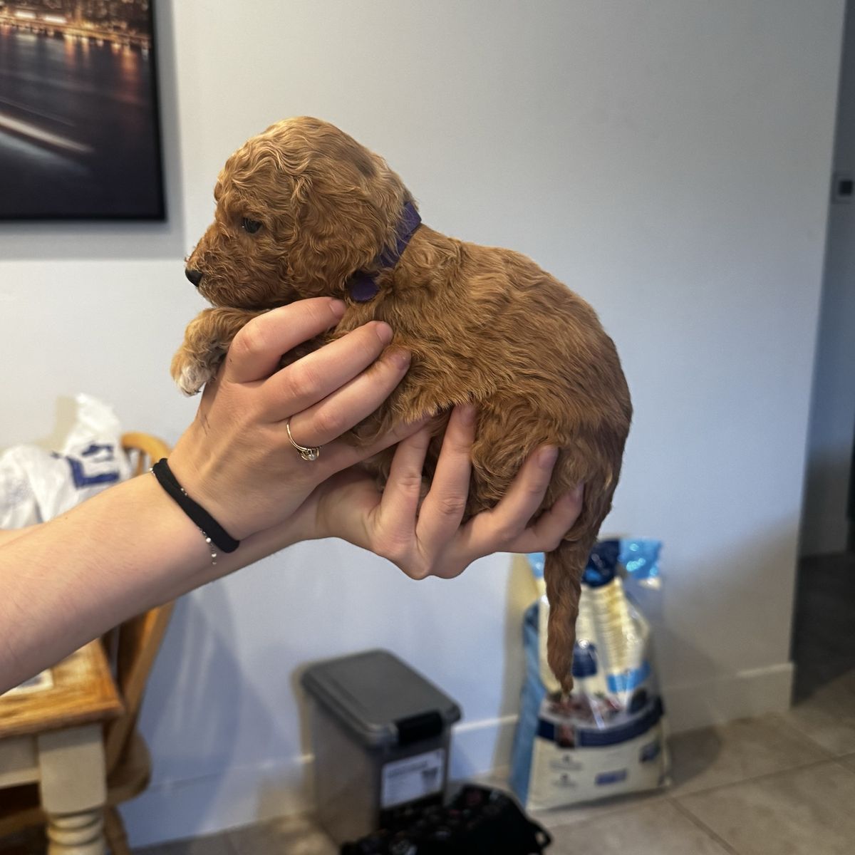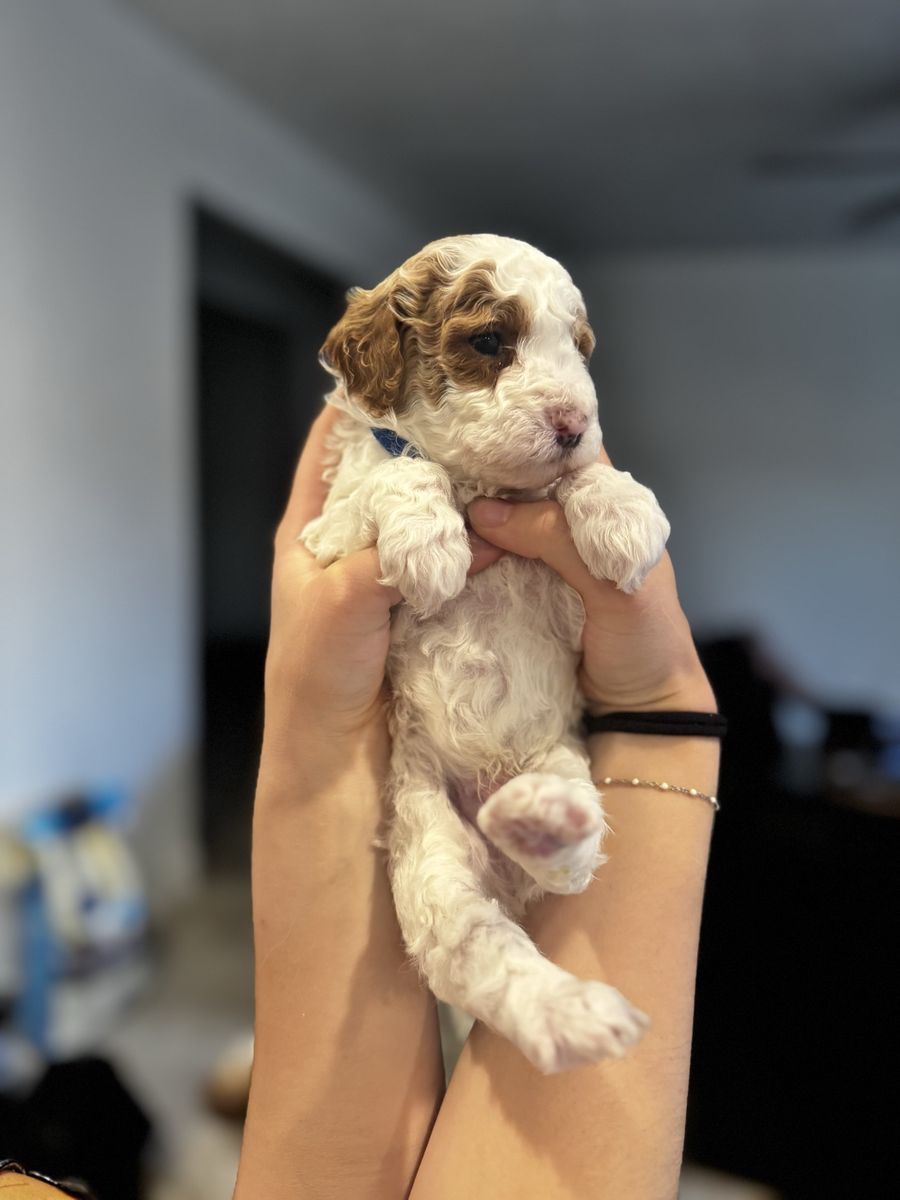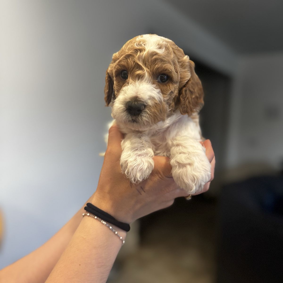 4 female and 4 male dogs. These are hypoallergenic dogs, and they are expected to be smaller/medium size. Reach out to meet puppy’s or put down a deposit towards one of the puppies.