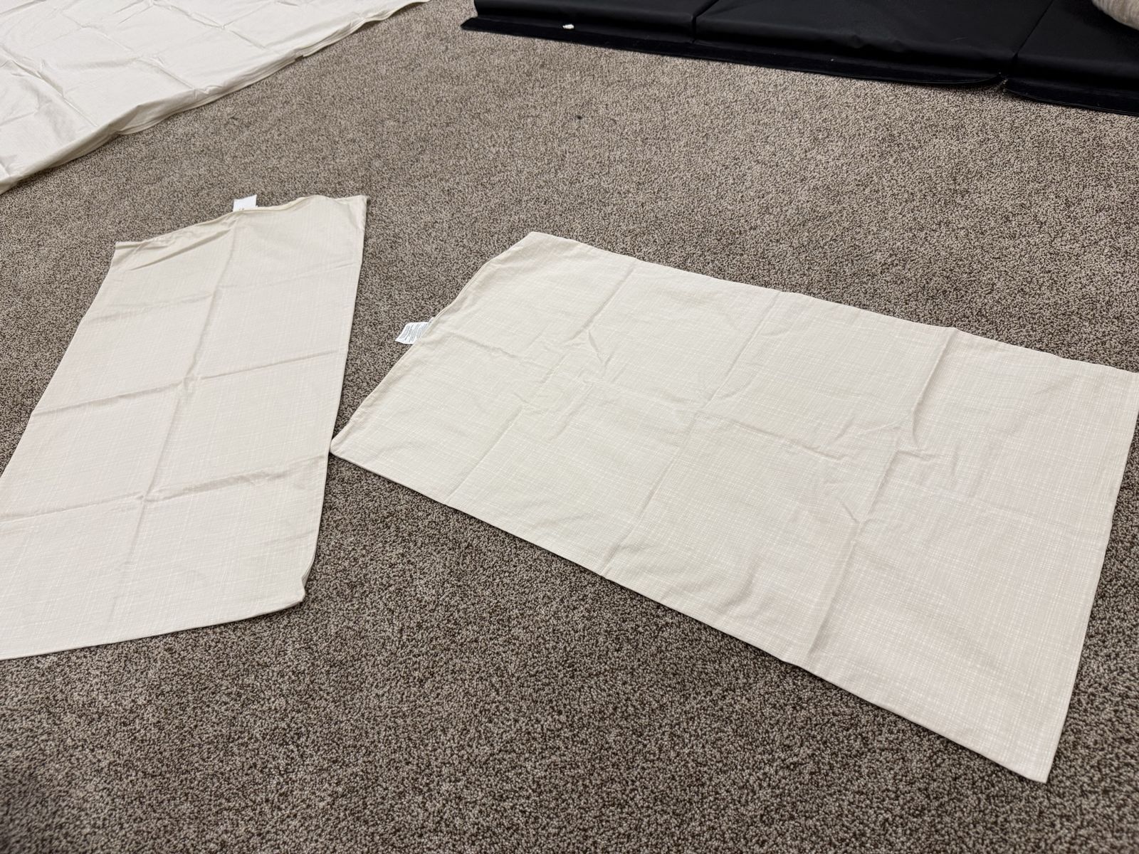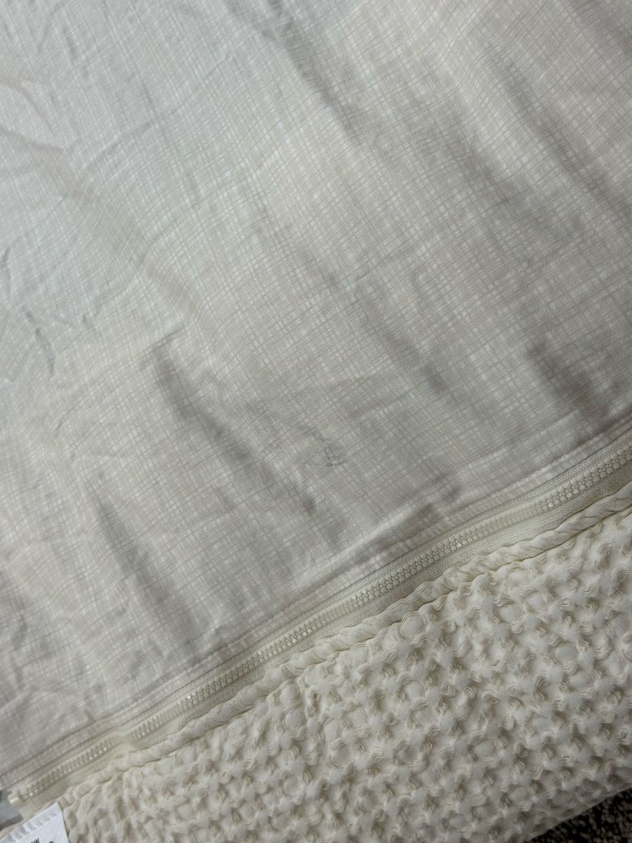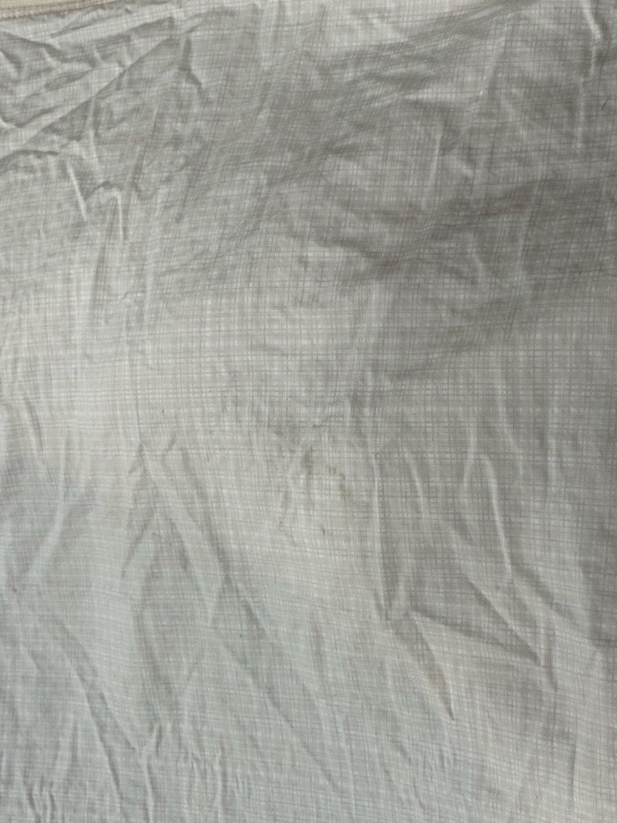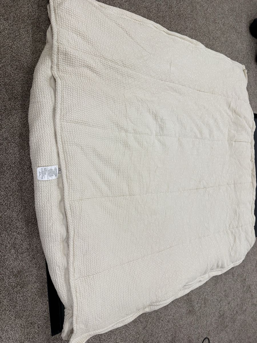 Has 2 shams and 2 cases and 2 sheets. One of the sheets has a couple dirt type marks. Mar54 item number.