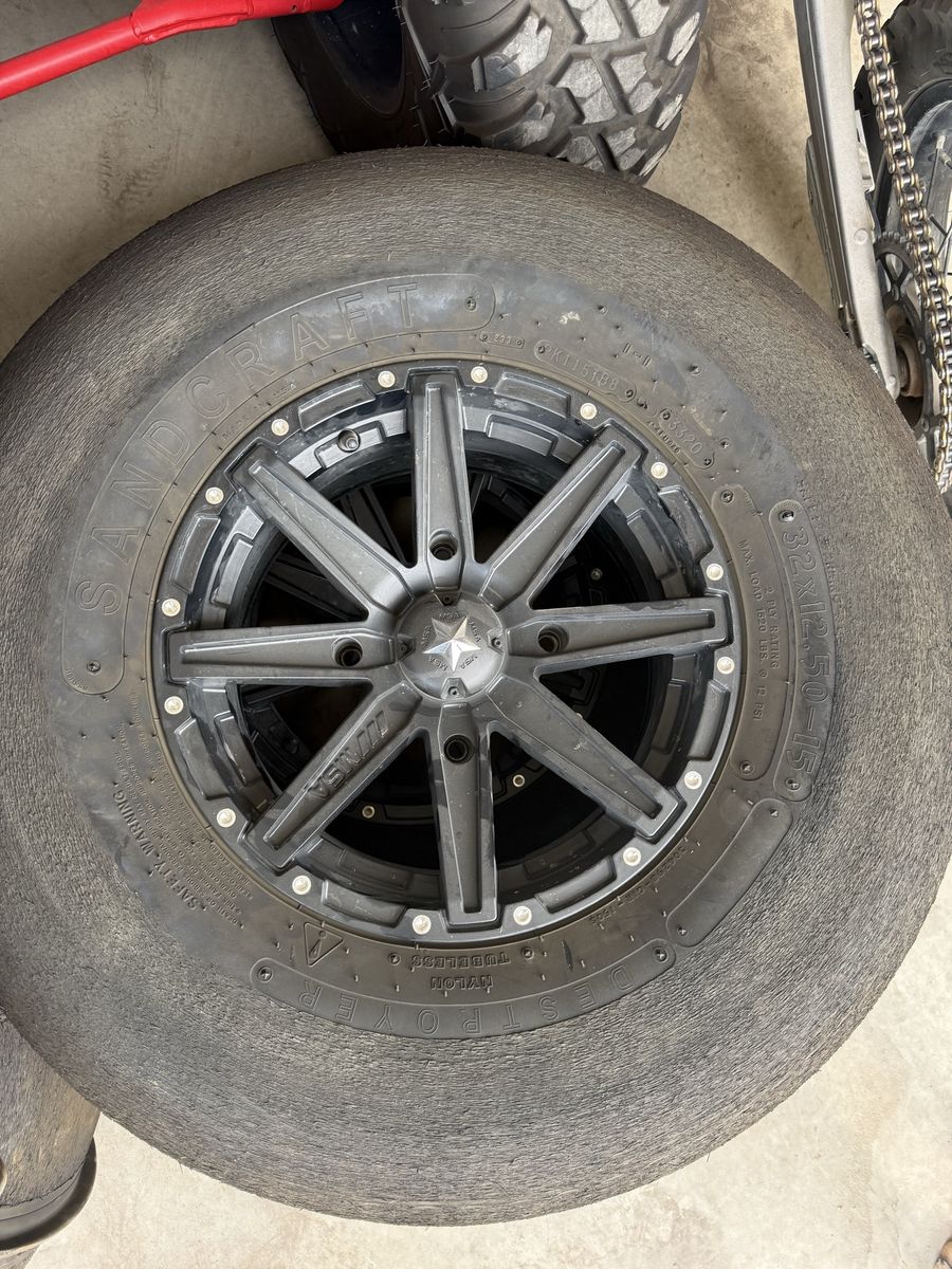 VenmoSandcraft destroyer talon skat-trak 32-12.5x15. These are on MSA rims. They were on a Polaris rzr xp pro. Haven’t been used much