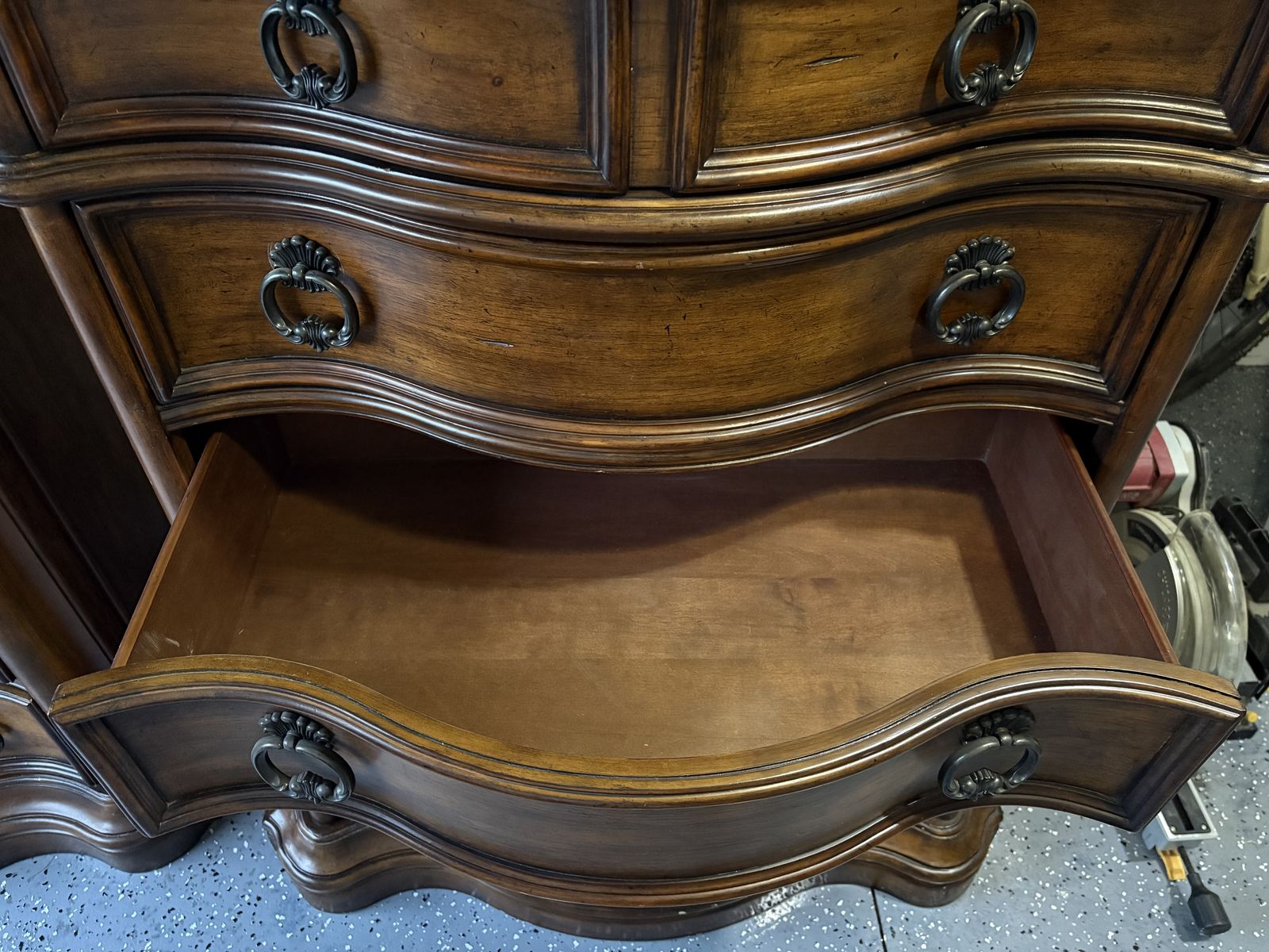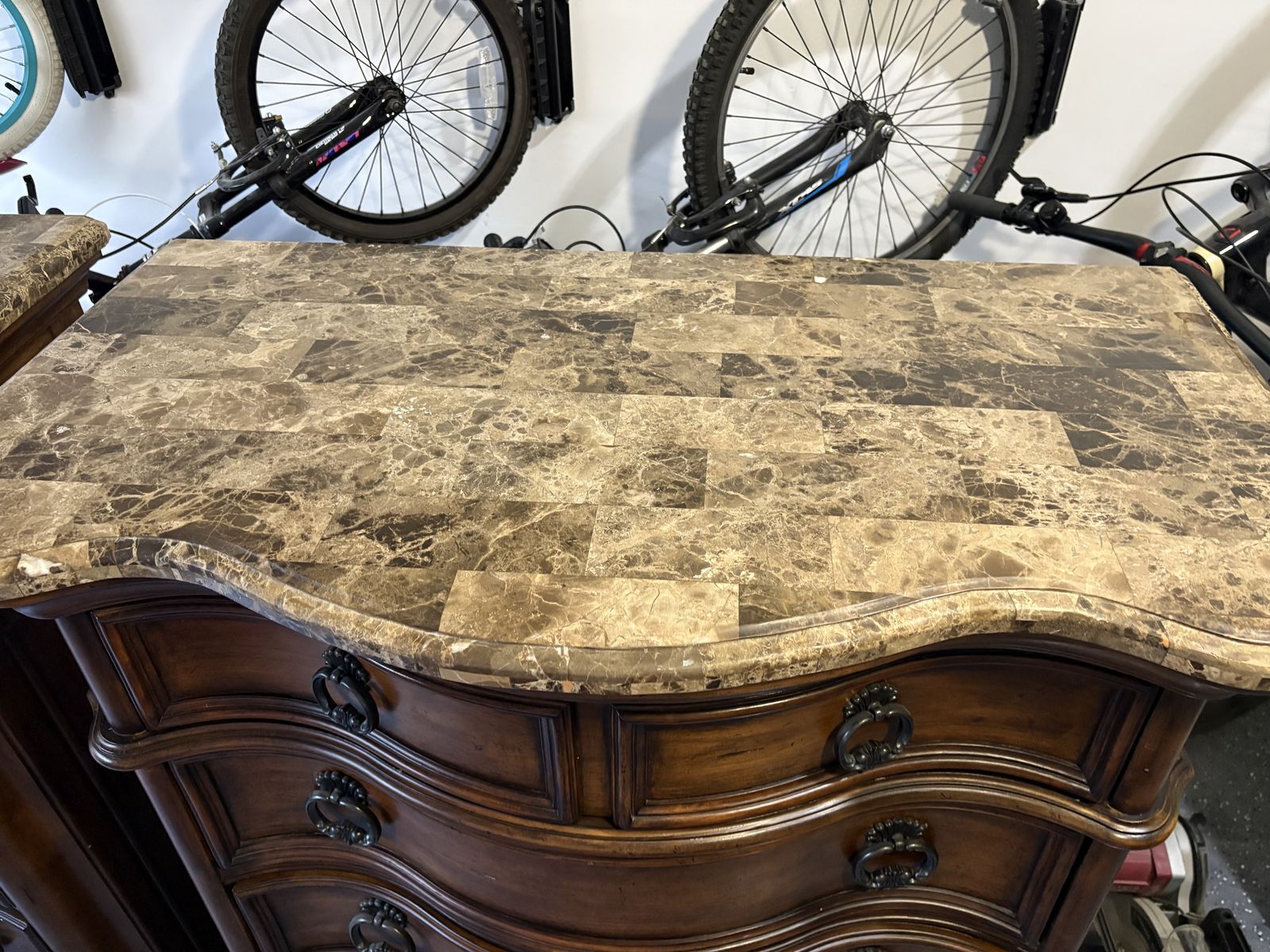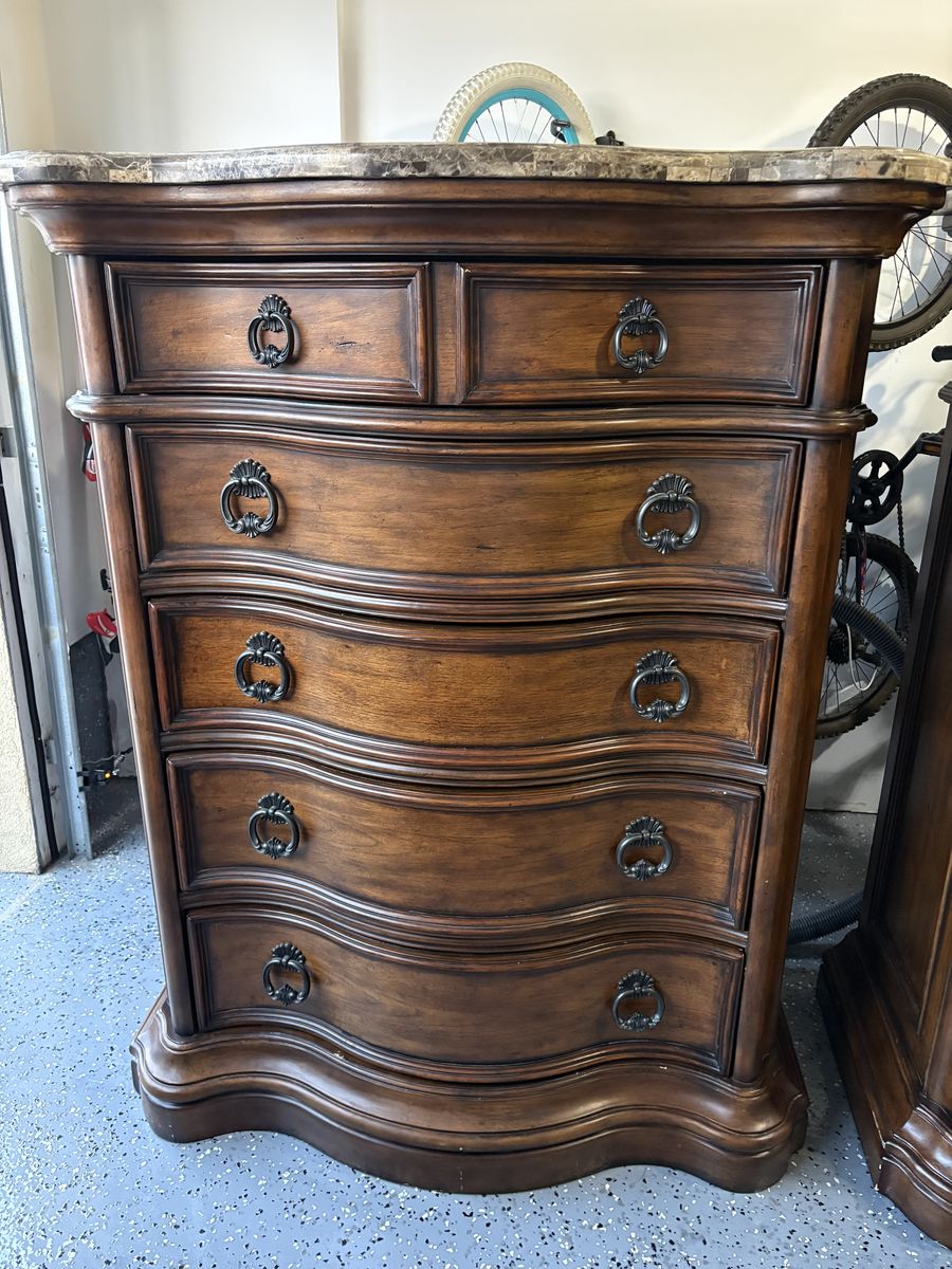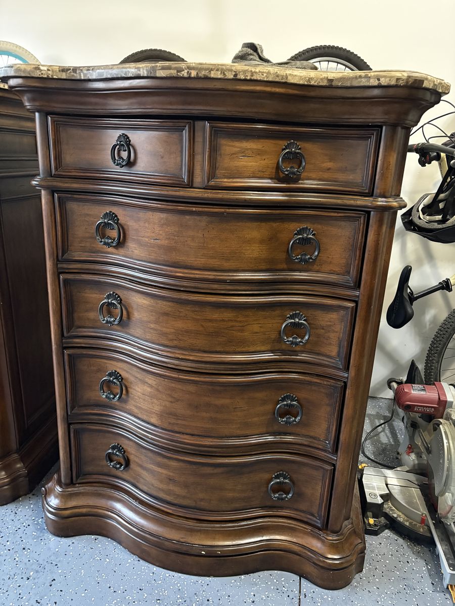 I have these two granite topped dressers that are in great shape other than a few dings and scratches, the worst of which are pictured. They’re about 5 feet tall, 3 feet wide and about a foot and a half deep. I can help you load them, they’re heavy are heavy but two people should be plenty.