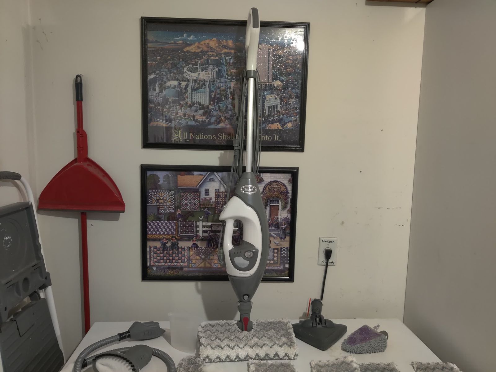 VenmoShark Lift-Away Pro steam mop with many accessories.