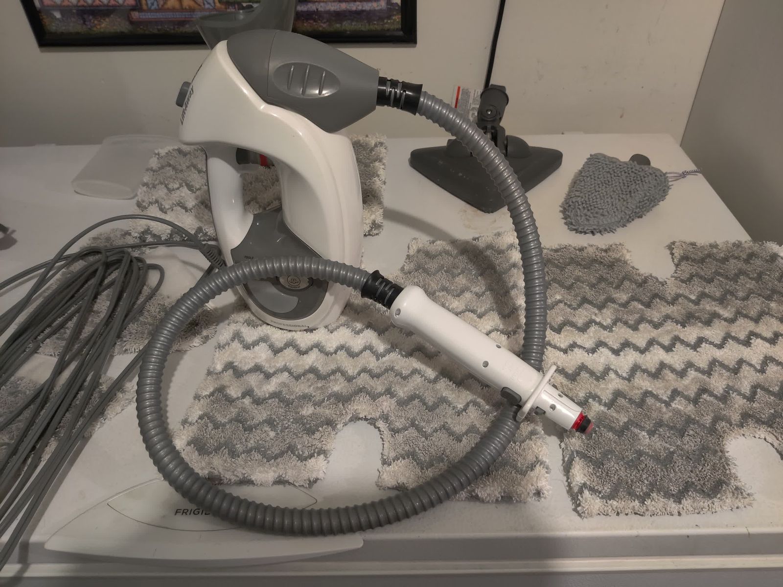Had this for about 8 years, still in great working condiotion. I've only ever used distilled water with this steam mop. Mop pads are clean, just stained from use. For floor heads, there are 2 settings, low and high. For tool use, pull the trigger and wait for steam. Both floor heads can shoot a jet of steam onto tough stains.