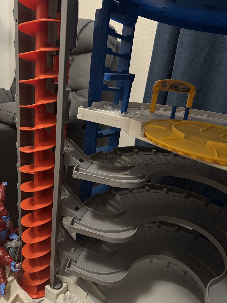 ApplePayBundle of random Hot wheels items the Hot wheels super ultimate garage is missing half of it I have posted an item of the original. It is also missing one small ramp. The motor for the car lift still works. Also including a lot of extra track and corners as well as a loop and motorized car launcher as well as 33 random cars and 3 space crafts.