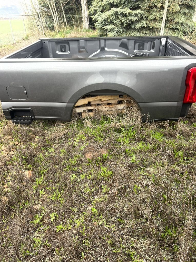 Venmo2024 super duty long bed comes complete with tailgate taillights rear bumper hitch and hardware for installation bed was taken off when truck was new carbonized grey is the color
