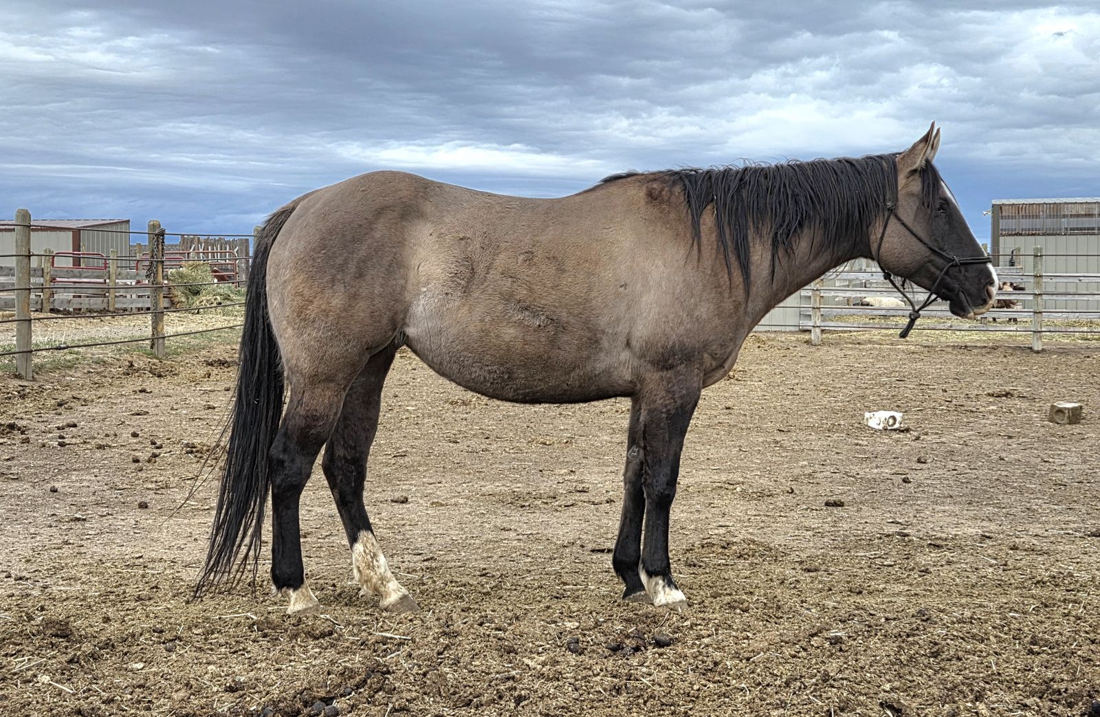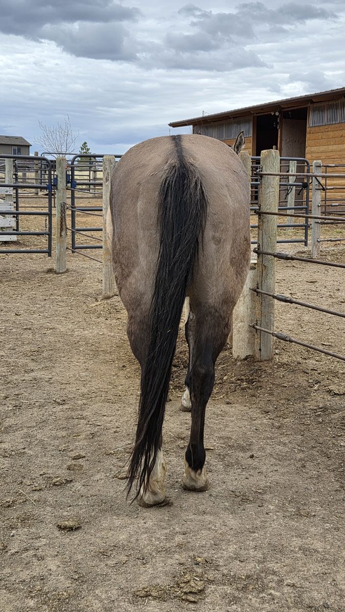 VenmoBeautiful AQHA Grulla Mare, I have only used her as a Broodmare, she had had 2 nice colts for me! She is sound if you wanted to train her, color tested, panel clean, 15h with a thick build! She can be harder for me to catch but handles fine once caught, stands tied, loads and hauls great! Middle/lower end of the pecking order in my herd, just needing to cut back on a few!