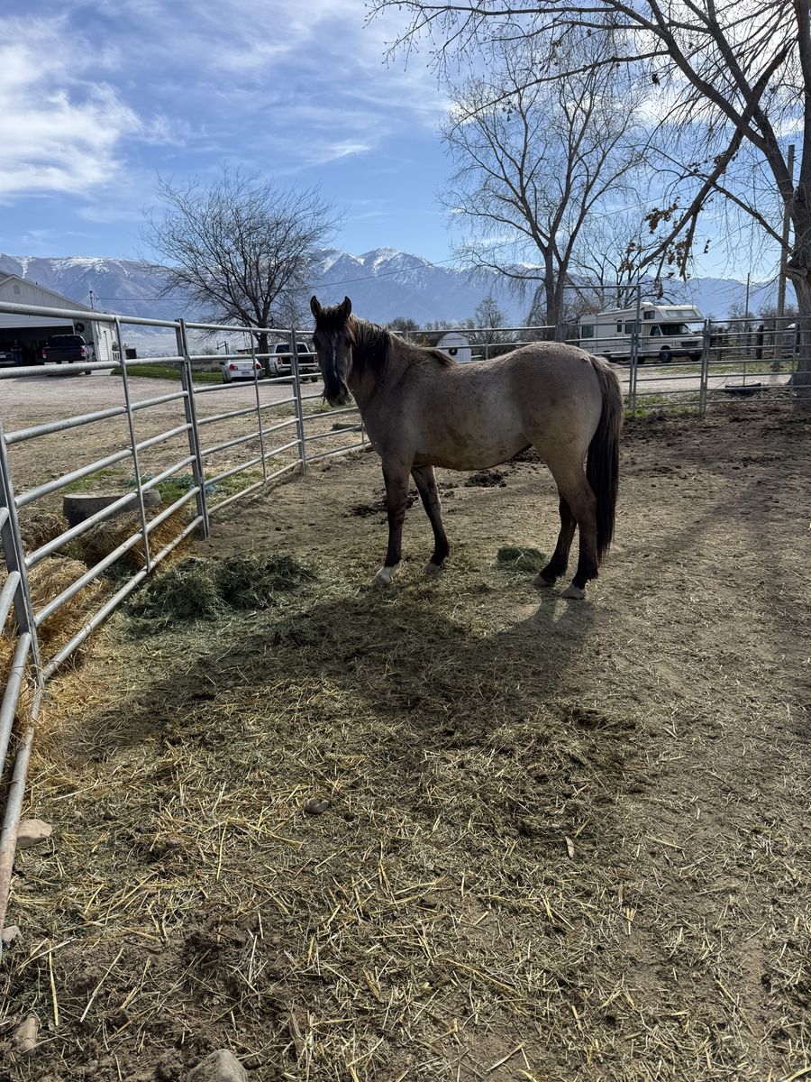 VenmoGrade 3 yo grulla filly. Just about 14 hands. Straight legs and sound. Will make a great horse Im moving so I have to sell her. She has not had anything done with her yet.