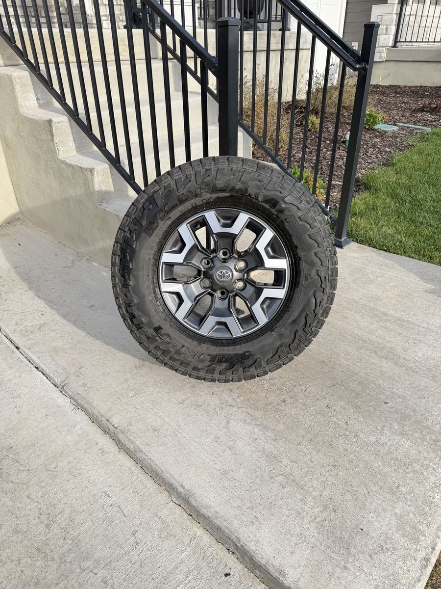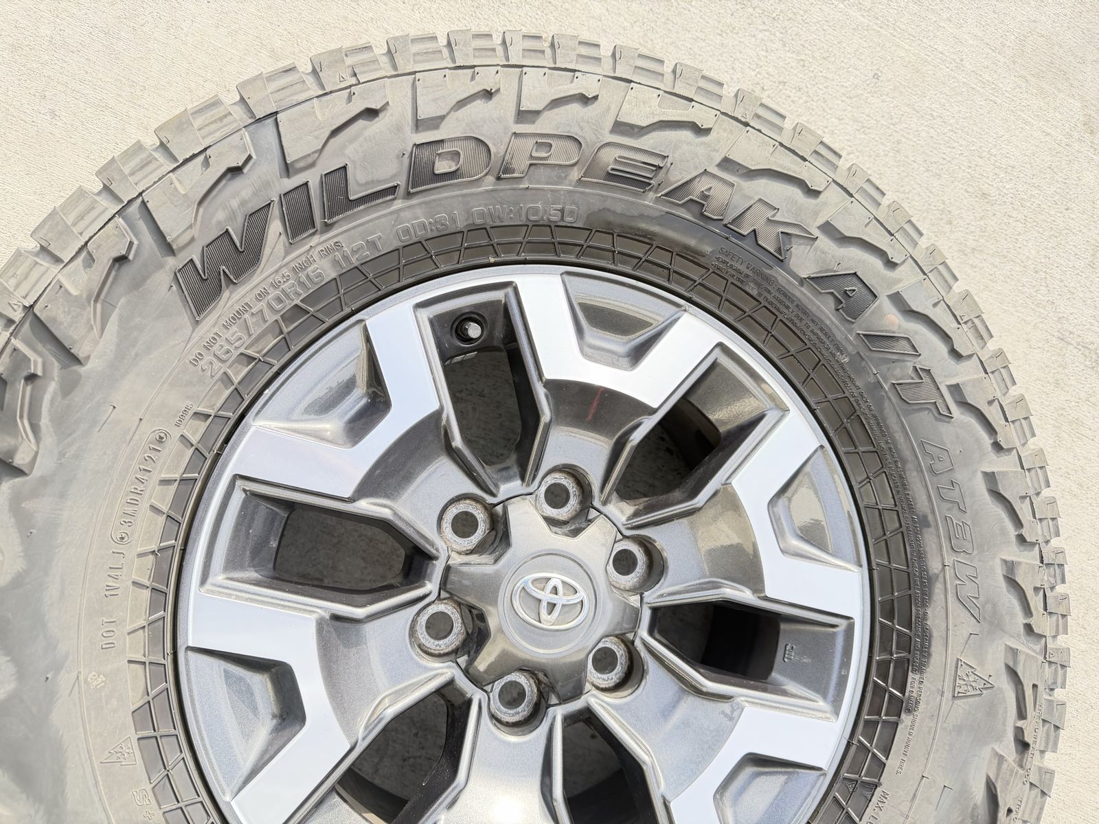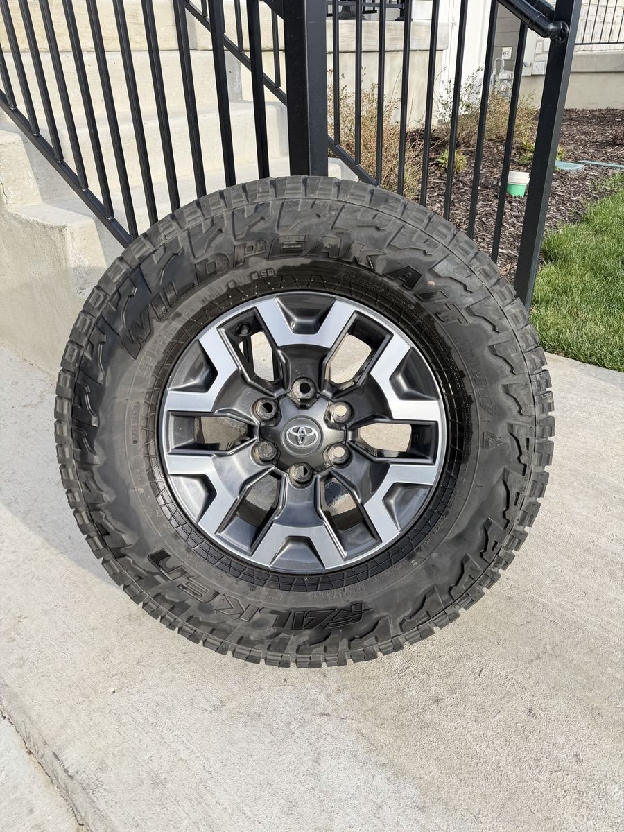 ZelleSet of 4-Toyota Tacoma Rims and Tires 265/70R16 Falken Wildpeak AT3W like new in great condition asking,asking $1100 obo Tires have lots of tread left Rims are in excellent condition no scratches or curb rash Comes with lug nuts I can sell the rims or tires separately Bolt pattern 6-5.5 or 6-139.7 Text anytime 385-402-2292