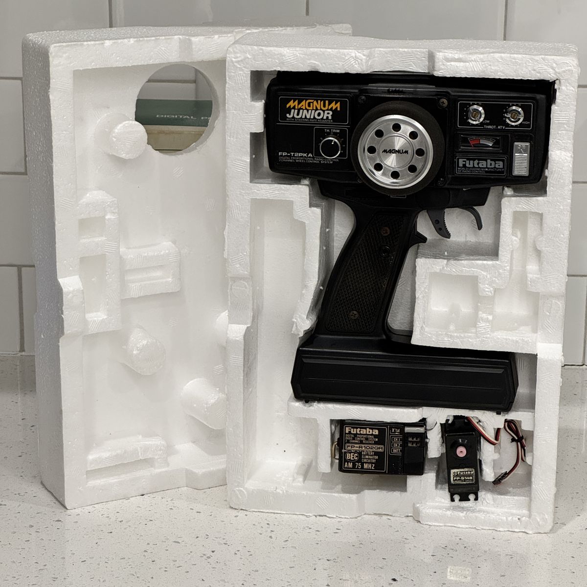 ApplePayVintage Futaba Magnum Junior FP-T2PKA complete radio control system. 75MHz AM, 2-channel, pistol grip transmitter. Includes the FP-R102GR receiver with BEC and one FP-S14B servo.