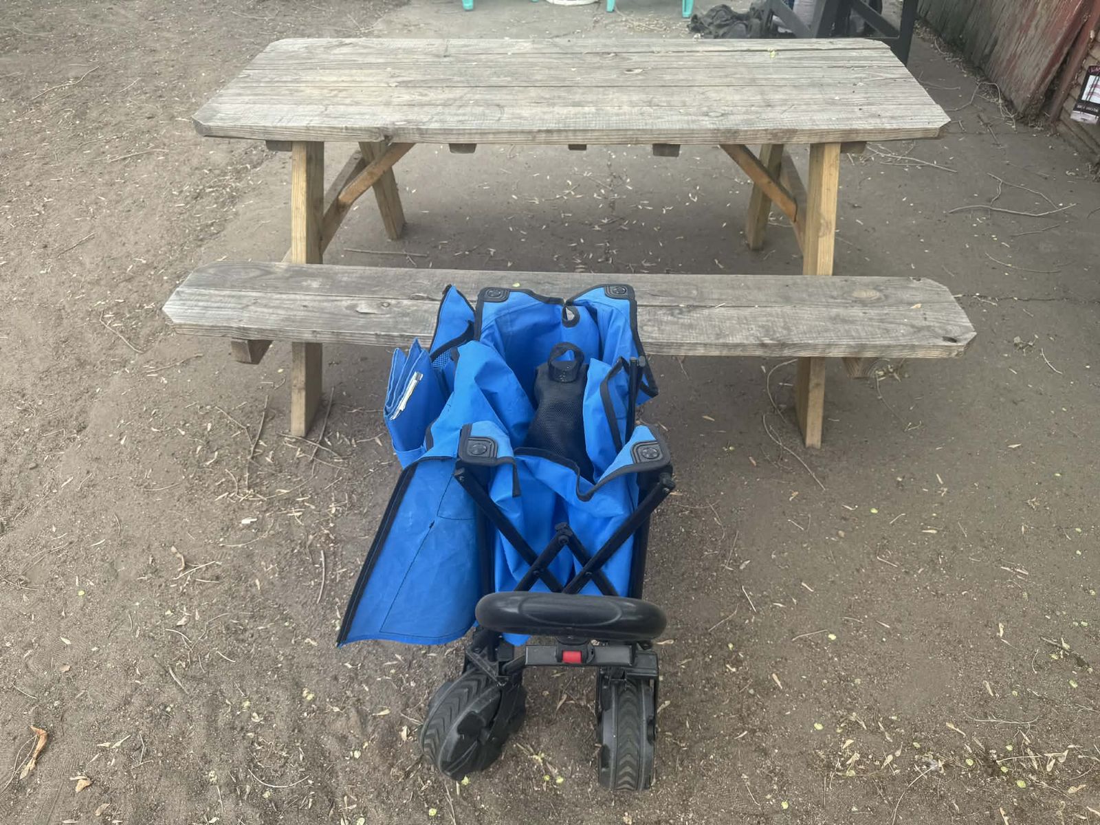 One strap used to secure it when folded no longer works, but the wagon functions perfectly fine. Shows some normal wear/staining inside (see photos).