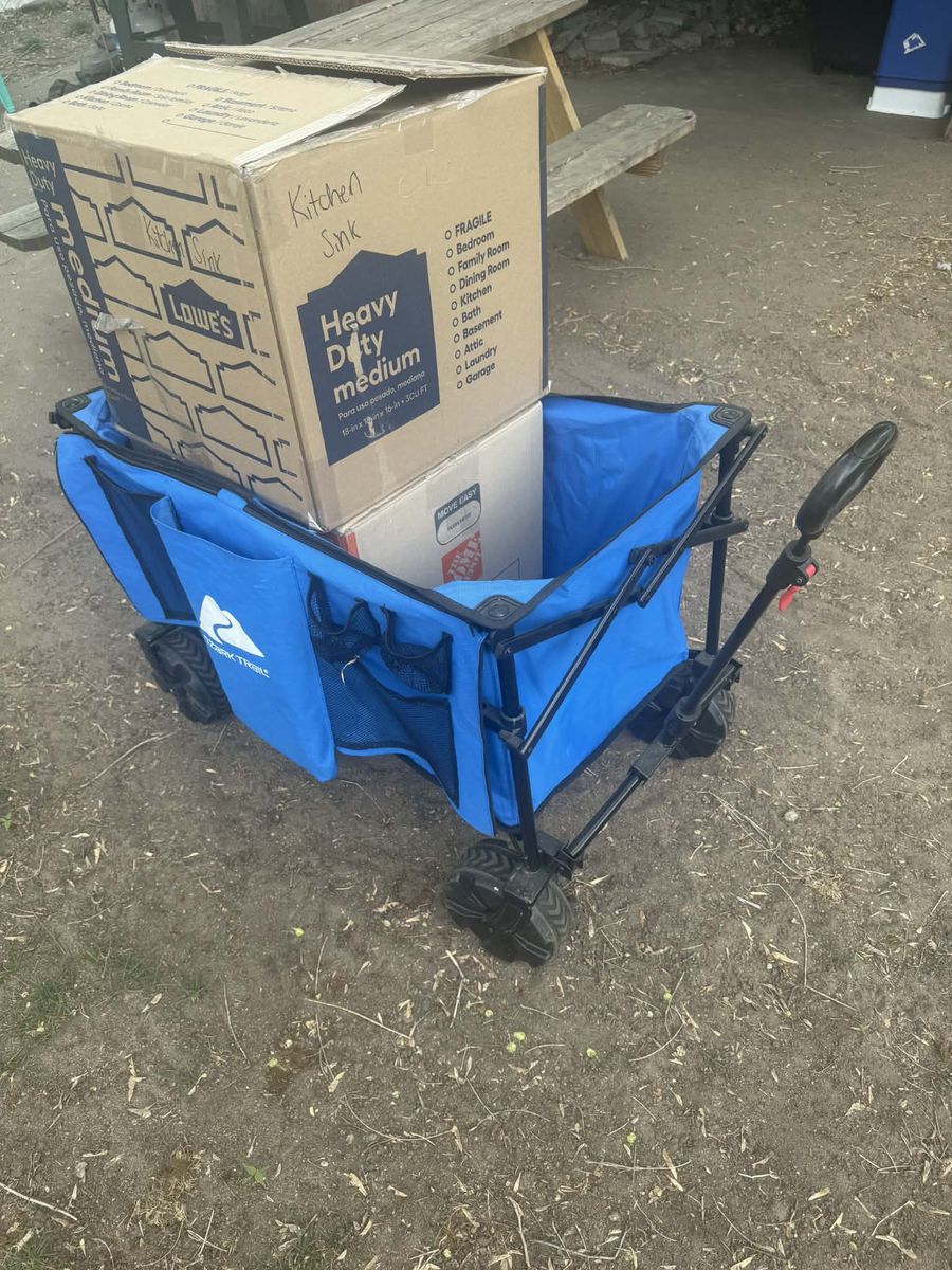 Great for moving, groceries, camping, or hauling boxes. Rolls smoothly and holds up to 260 lbs (see photo with boxes).