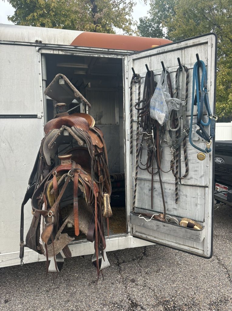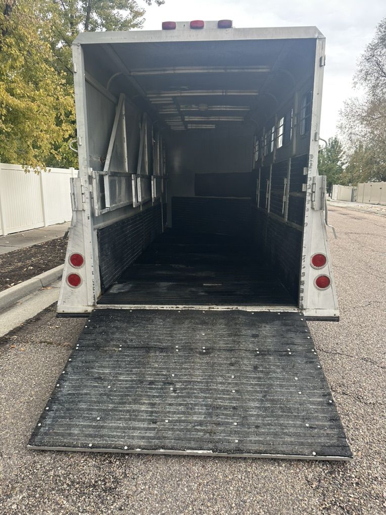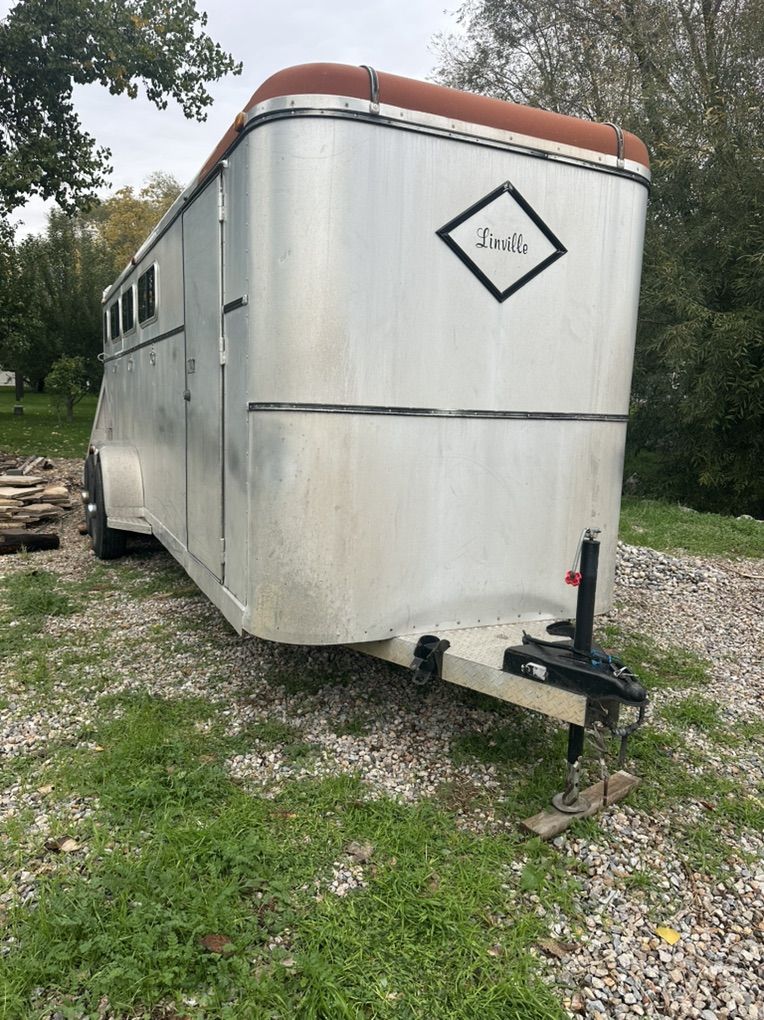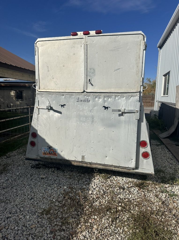 All aluminum -model TL 1988 Linville 4 horse trailer in good condition. Slant load with dividers, lined lower walls and rubber floor mats, roof vents, drop down ramped tailgate, new tires and bearings repacked last fall, swing out saddle rack in front tack, pulls great. Take out dividers to haul 5 horses Asking $7,500 See in Farmington Utah.