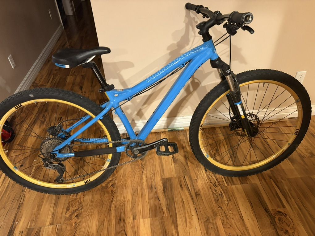 PayPalDiamondback Lux 27.5 hard tail mountain bike. Upgraded with Shimano SLX 1x11 M7000 groupset and SLX hydraulic disc brakes. 32 tooth front chain ring. 170 mm cranks. 11-42 cassette. Rear derailleur has a clutch, which keeps the chain on more reliably and reduces chain slap. Shifts smoothly and brakes feel strong but not grabby. Size small - label states for rider height 5’4” to 5’7”. This bike is very fun to ride. My son grew up riding it and has graduated to another bike.