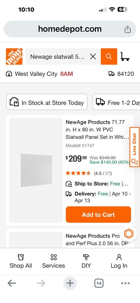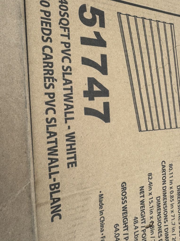 PayPal4 brand new boxes of NewAge 51747 white slatwall. Each box has 40 square feet. The box has six (6) strips that measure 80” x 12” that combine to create a wall 6.5 feet long by 6 feet high.