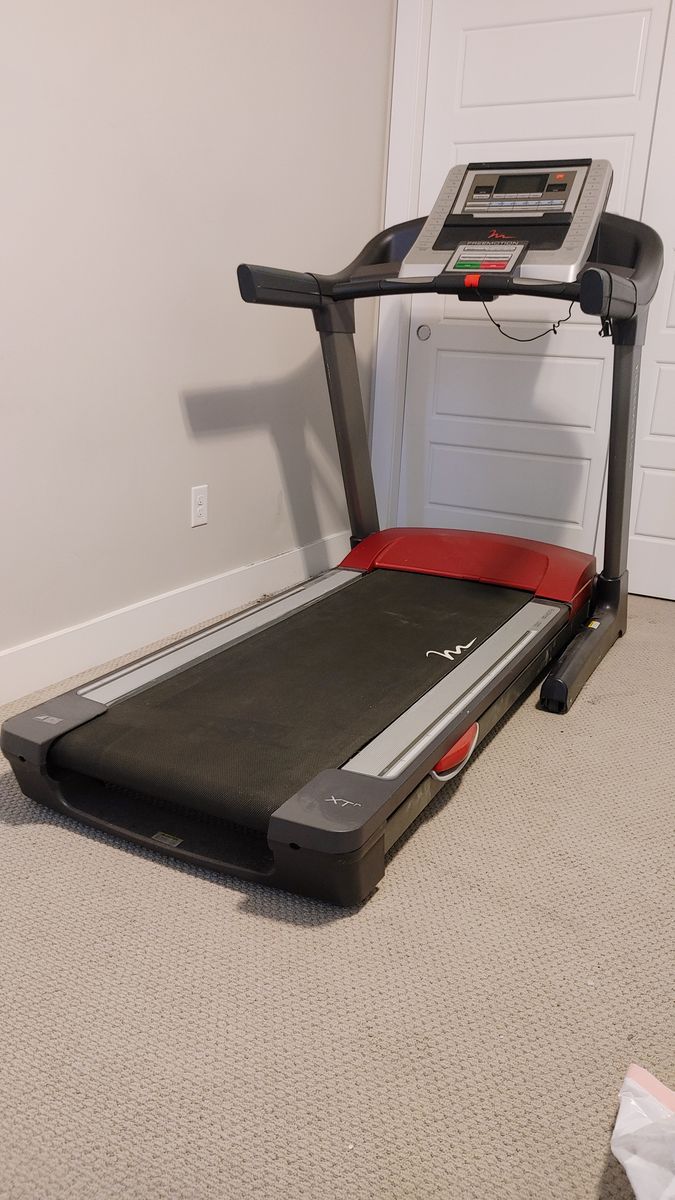 PayPalFreemotion Treadmill.We bought this used 3 years ago, but need space,. You'll need at least a few people to lift, it's very heavy. It is in our entryway on the main floor right now. It does get a little loud when running on it, but it works great. Right now we disassembled into 2 parts.