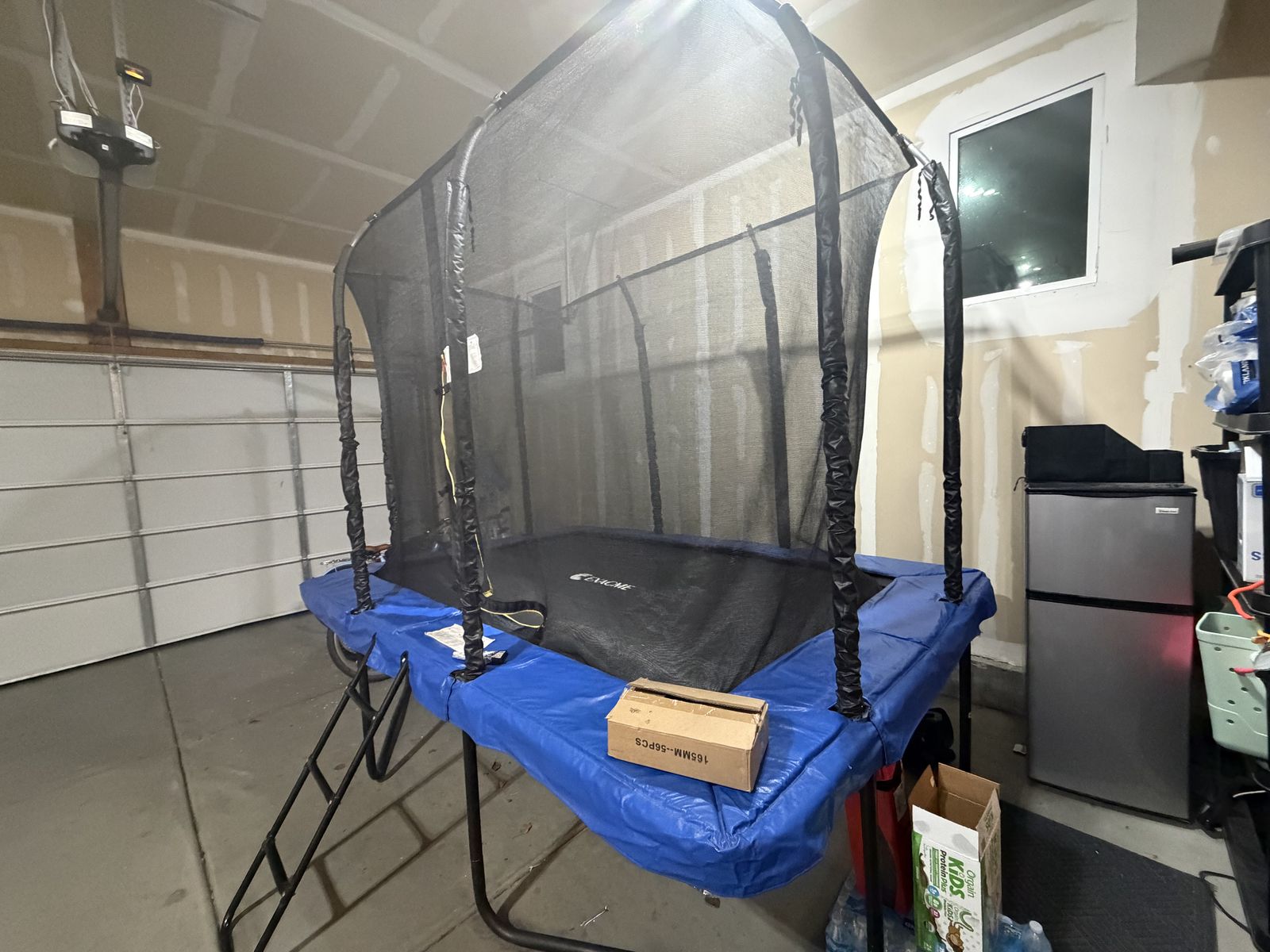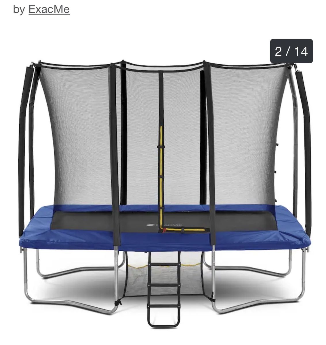 VenmoSlightly used, always stored inside, ready for immediate pick up! Steady Frame & Multi Safety Measures: Exacme Rectangle Trampoline frame is made by heavy duty galvanized steel, it will provide you with high confidence when you are jumping. The design of inner enclosure leaves enough space from net to poles to avoid collision when kids fall and it will also prevent kids' feet from stepping onto the springs Durable Material & Weather Resistance: Heavy duty galvanized frame with hot-dip galvanized springs is hard to rust and deformation, it will provide lasting smooth experience of jumping. When you using the recreational trampoline, we never allow your trampoline become ugly. It will keep bright color due to the test of 500 hours of sun protection. The sleeves for poles will also avoid foam degeneration to support your trampoline better