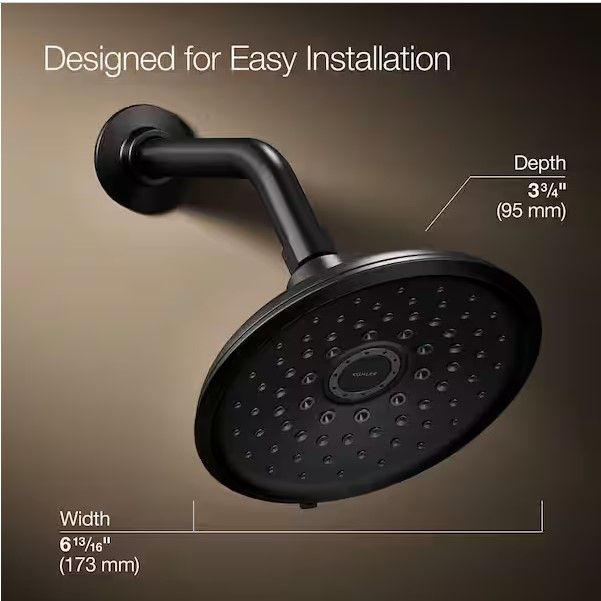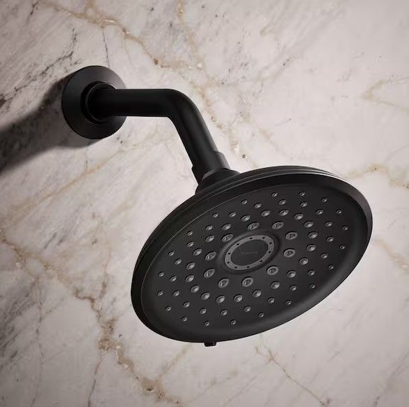 ApplePayKOHLER Cursiva 3-Spray Patterns 6.75 in. Wall Mount Fixed Showerhead in Matte Black