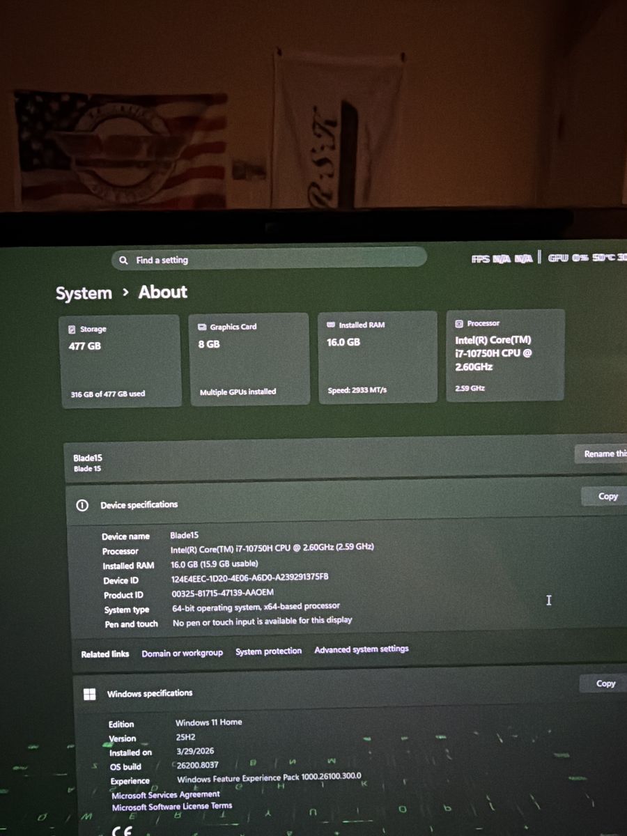 VenmoRazer blade late 2020 model with an intel i7 and a rtx 2070 battery just replaced. 1000 obo