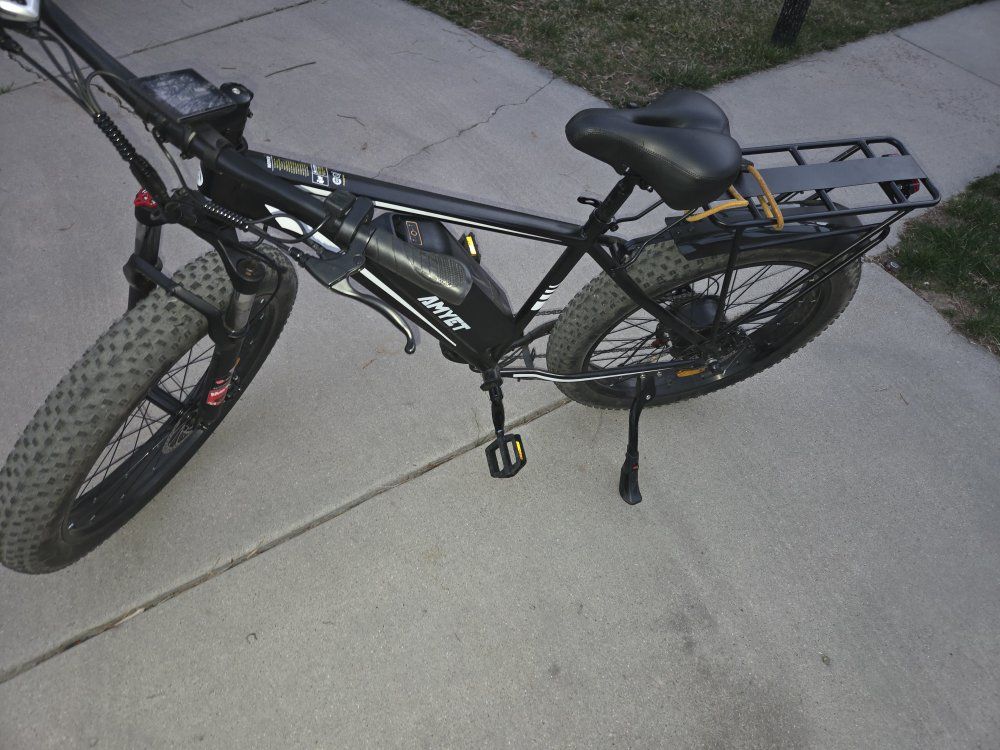 Super nice and almost new Amyet Electric Bike. Less than 36 miles. Bike is too tall for my wife. She is getting a women's version. Got for Christmas and only ridden twice. Have front fender(not attached) and charger. Just in time for Spring.