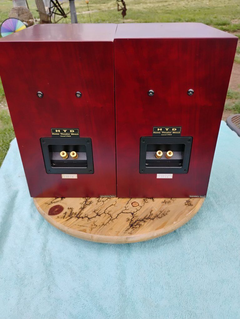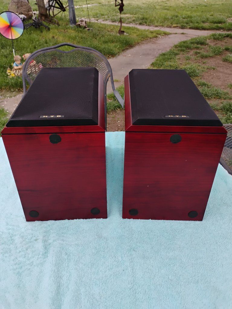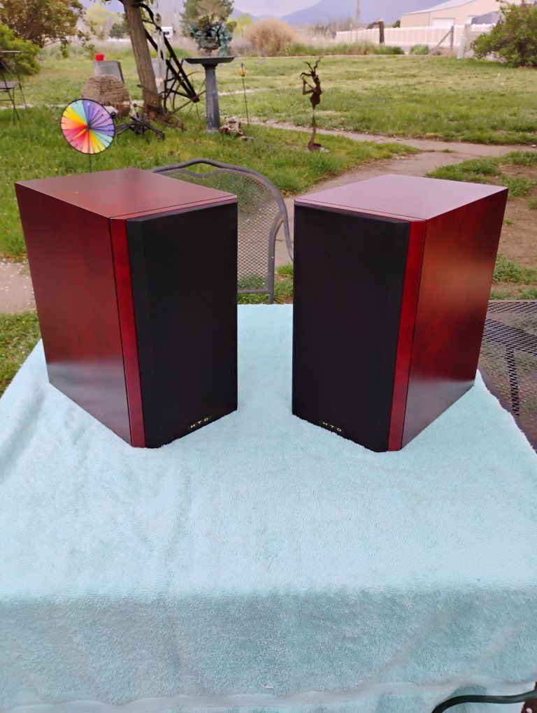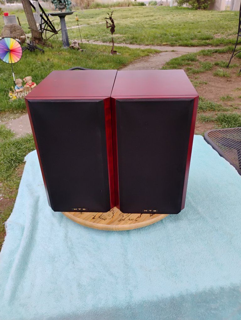 VenmoDark Cherry Veneer. Look and sound great. Couple minor flaws, but overall very good condition. See pics. Size 11.75 h 7 w 10.5 d.
