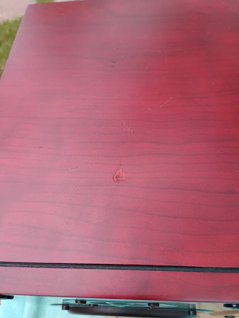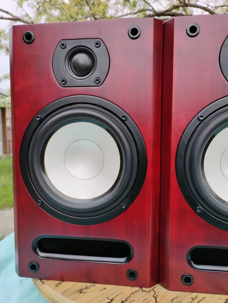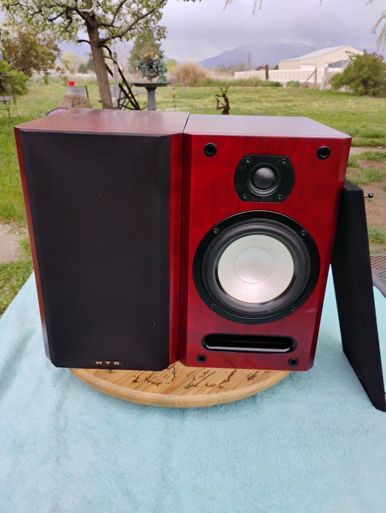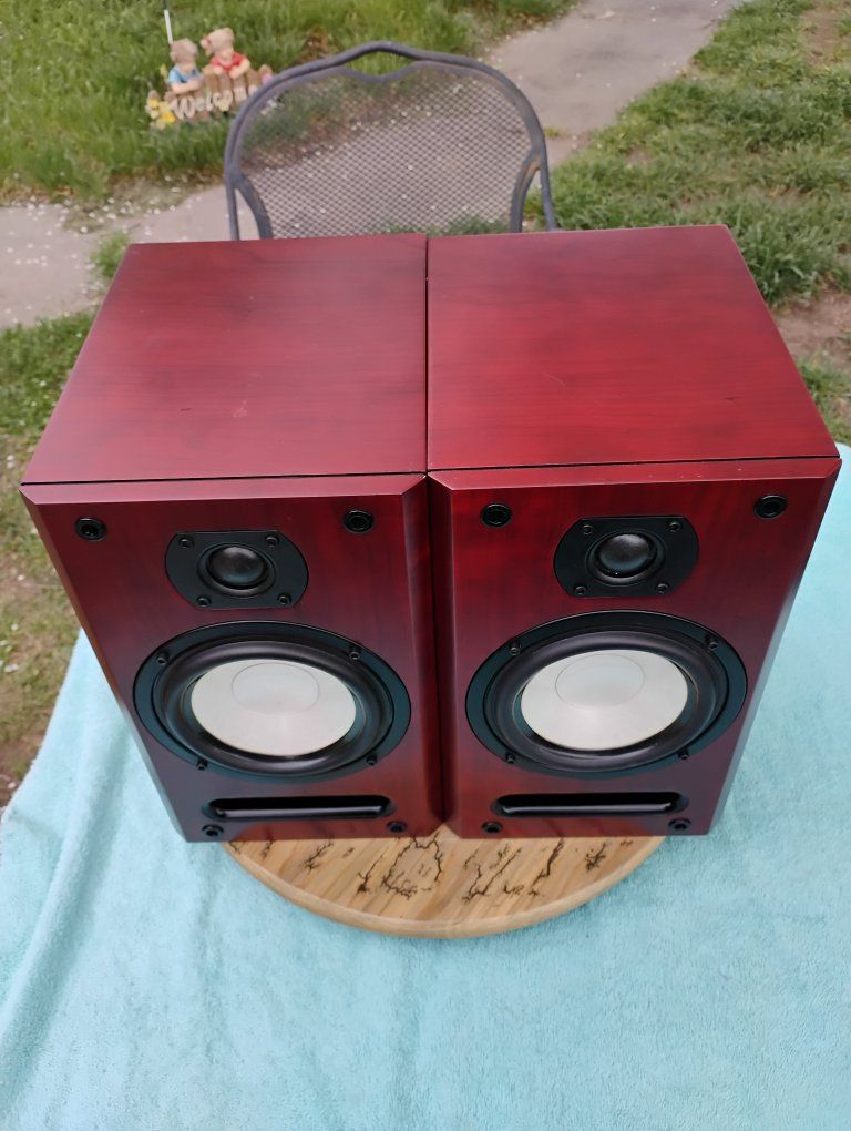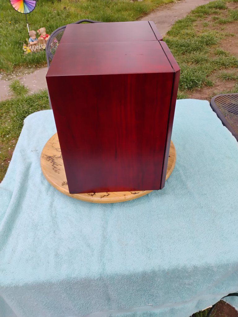 VenmoDark Cherry Veneer. Look and sound great. Couple minor flaws, but overall very good condition. See pics. Size 11.75 h 7 w 10.5 d.