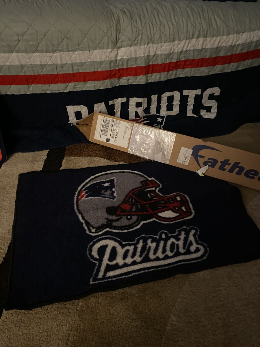 VenmoNew England Patriots couch cover, welcome mat, etc, Tom Brady fathead set.