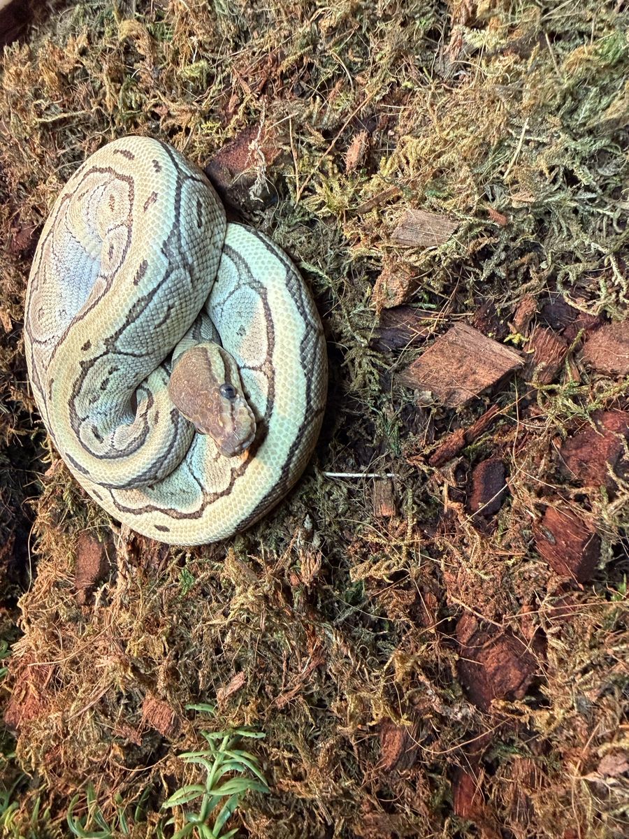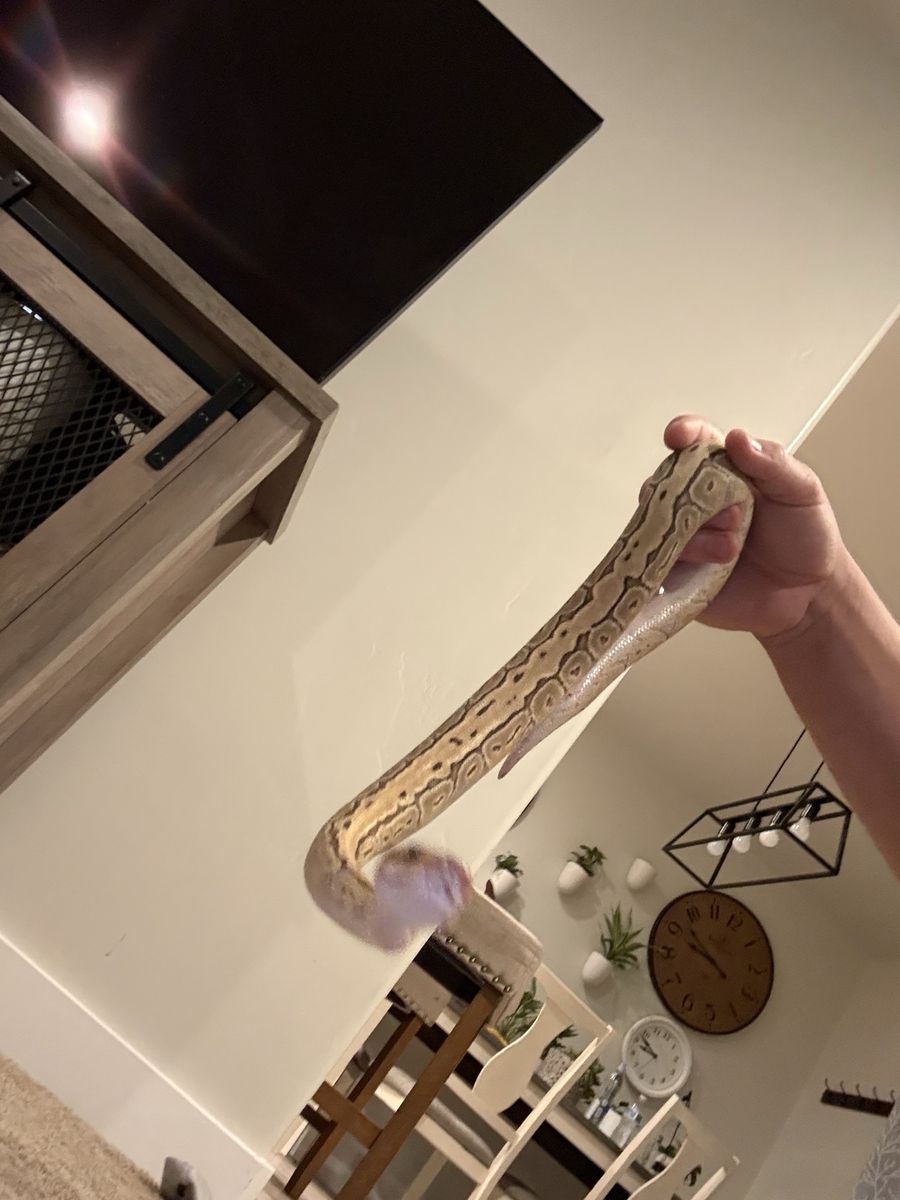 Venmo1 year old ball python. Very very very large for her age so plz have a large enclosure Eats a ft mouse one a week Feel free to ask any questions! Thank u
