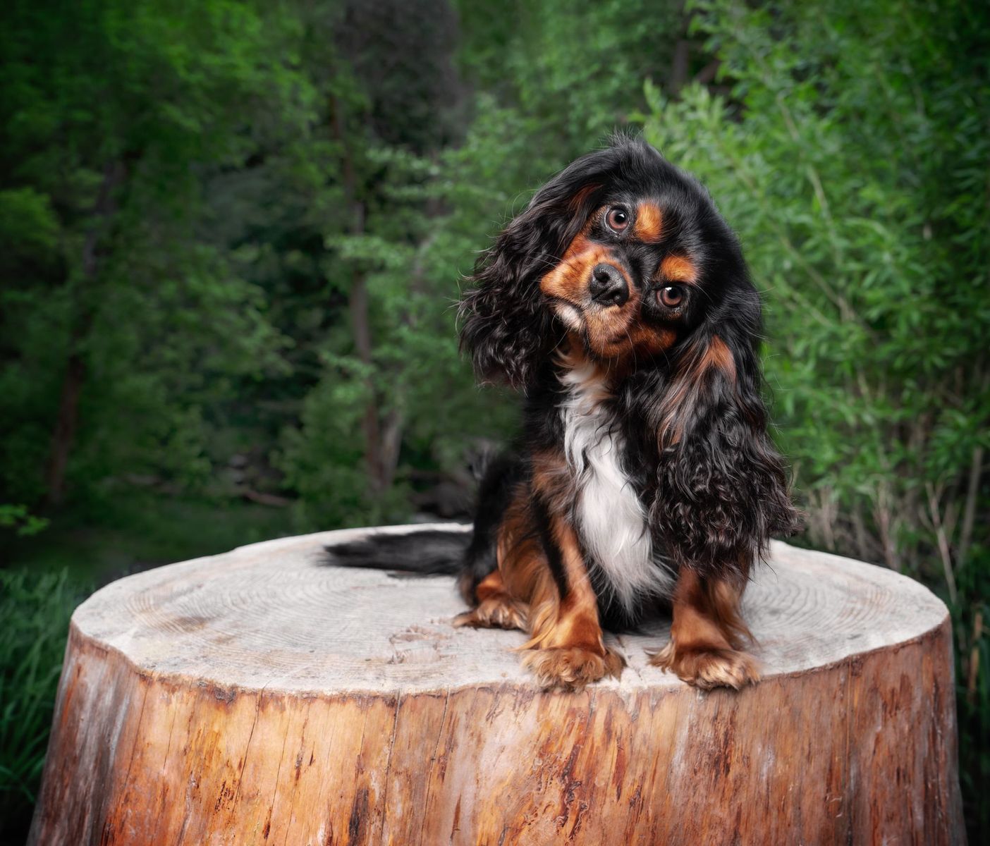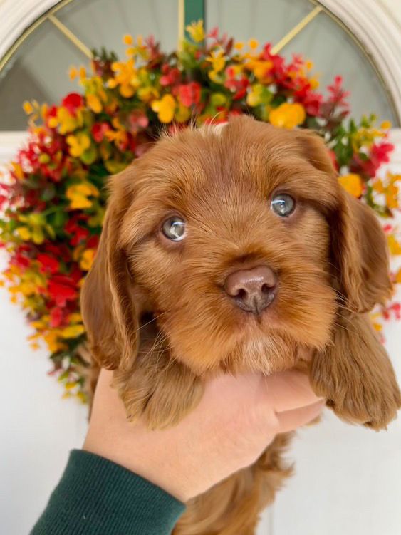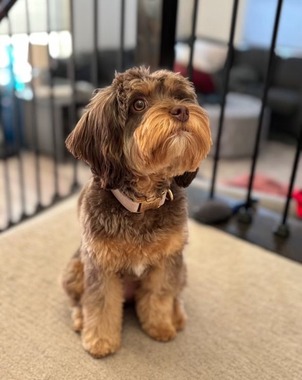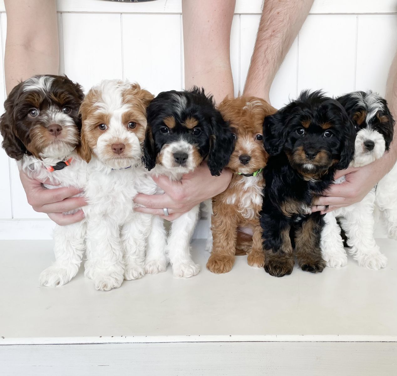 Duke is 13.5 lbs and is such a lover and is just the sweetest most gorgeous dog. His doesn't have the tear stains and has a nice wide face with a short nose that everyone loves. Duke is small for a Cavalier and so adorable in person.