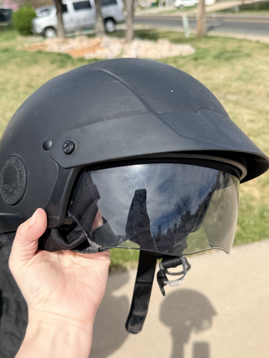 VenmoHarley Davidson Half face with visor (M). Used once and then we have not been able to ride so it’s basically brand new.