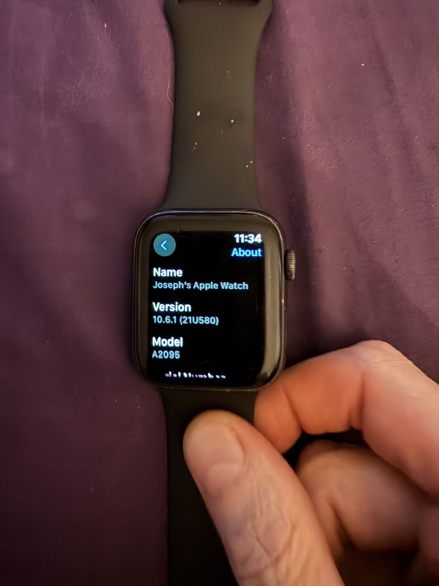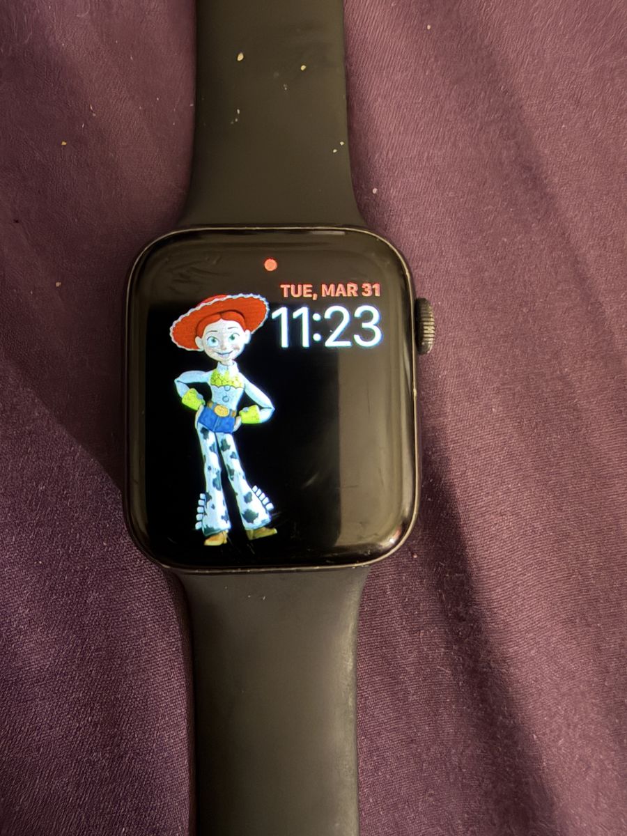 I have an Apple Watch Series 5. 44mm GPS + Cellular. Model A2095. It’s about 7 years old. It’s in good shape. There are some scratches on the screen but as you can see from the on and off photos they aren’t easy to see.