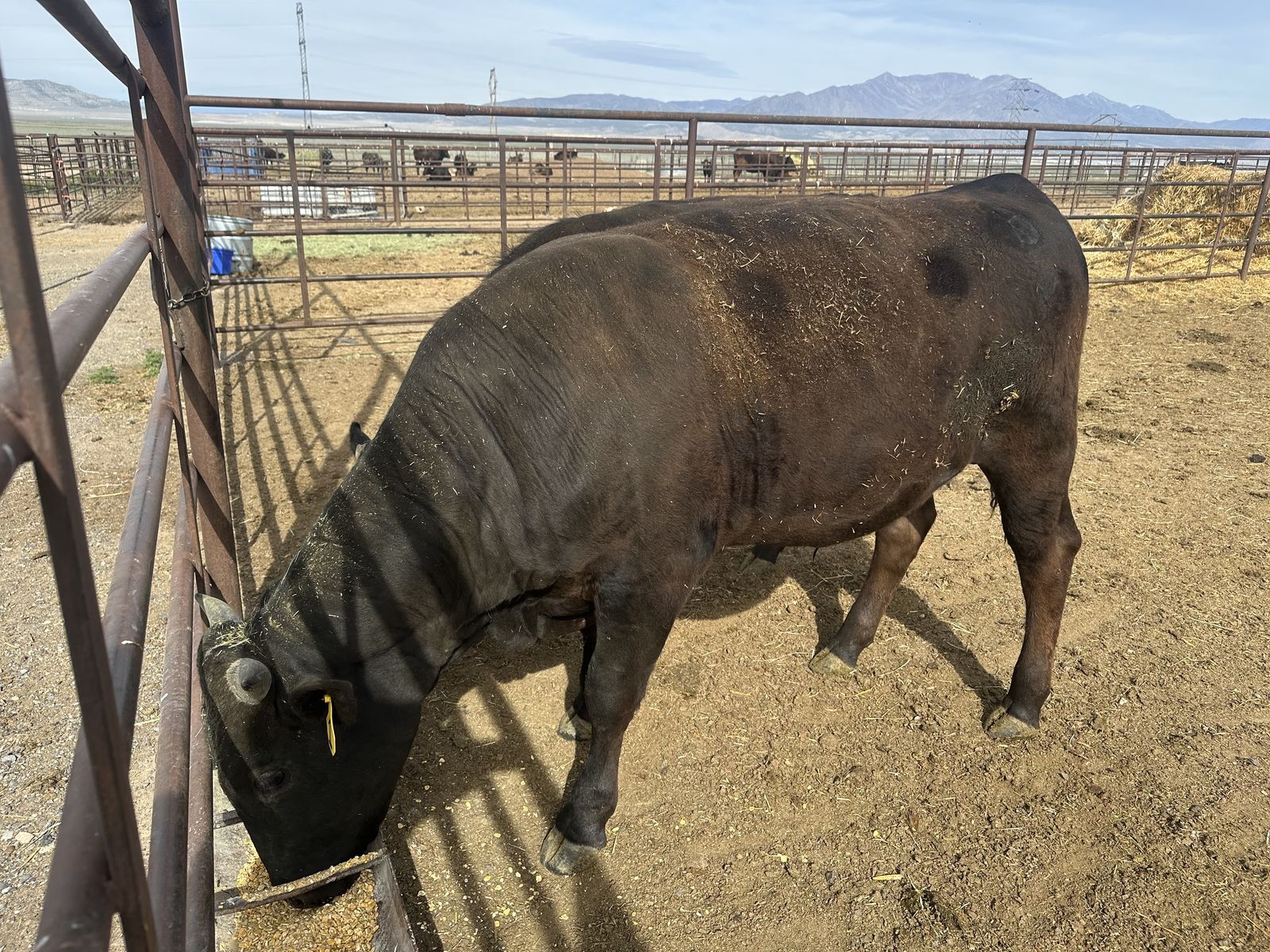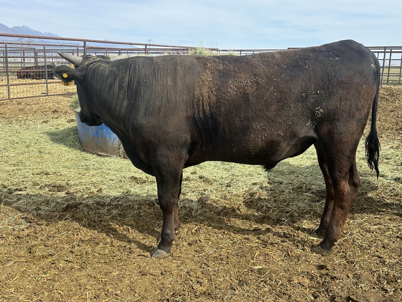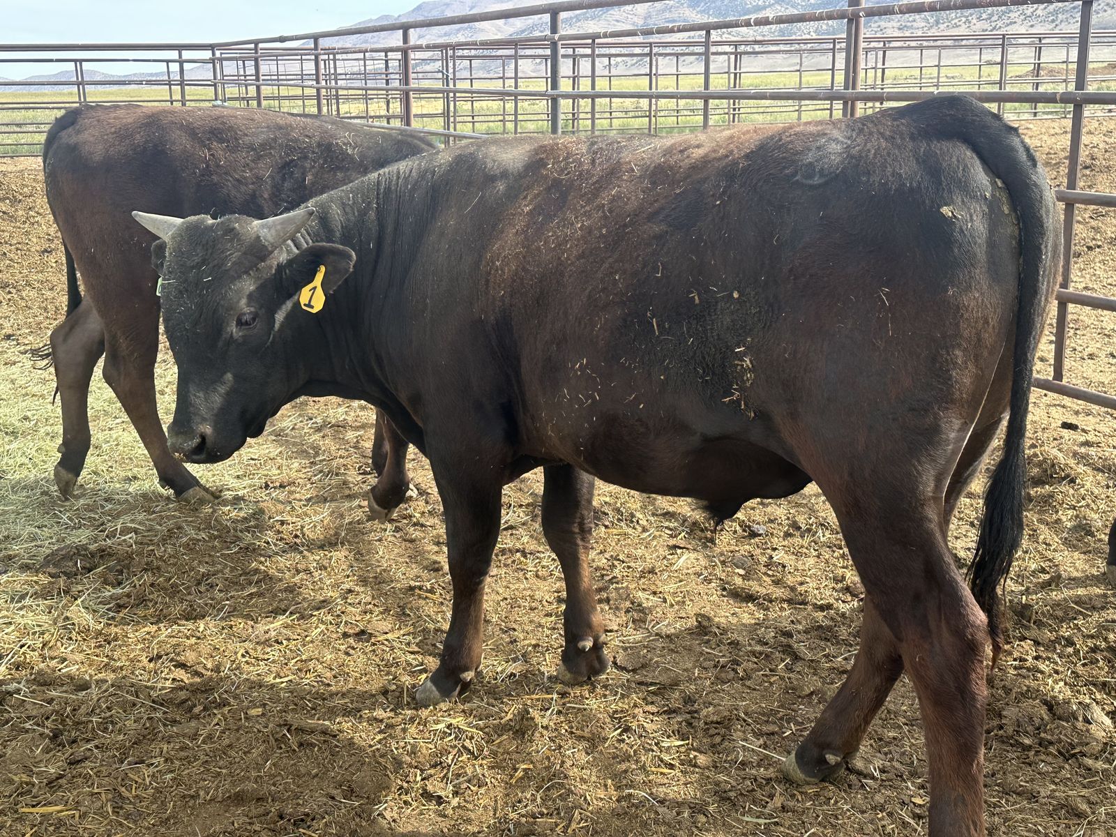 Wagyu bull ready to breed. Good looking wagyu! Passed semen test and Trich test a month ago. Hes 16 months old, big body frame and will breed your heifers and big cows. Will add incredible marbling to all beef cows and not loose size.