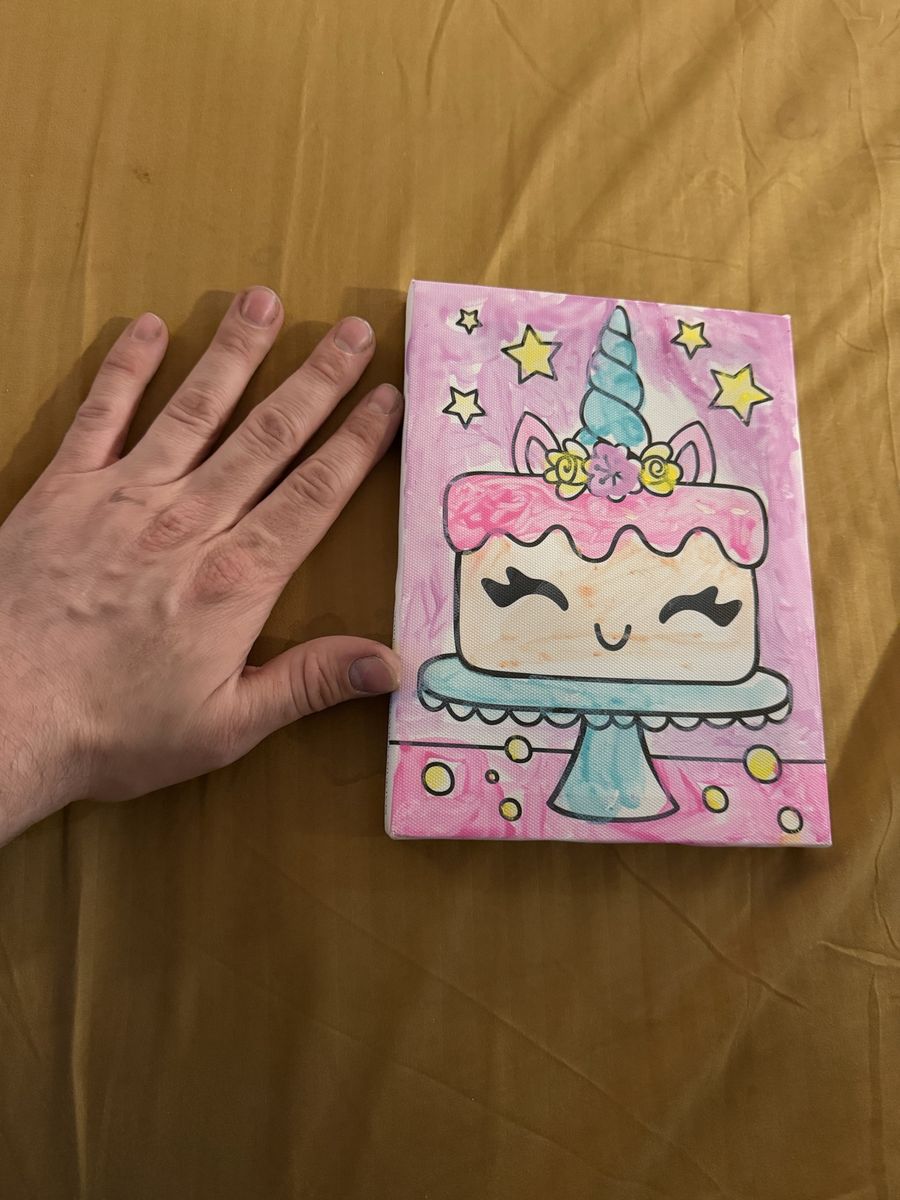 Cute canvas of a cake. Would look nice in your room or in a fun kitchen space.