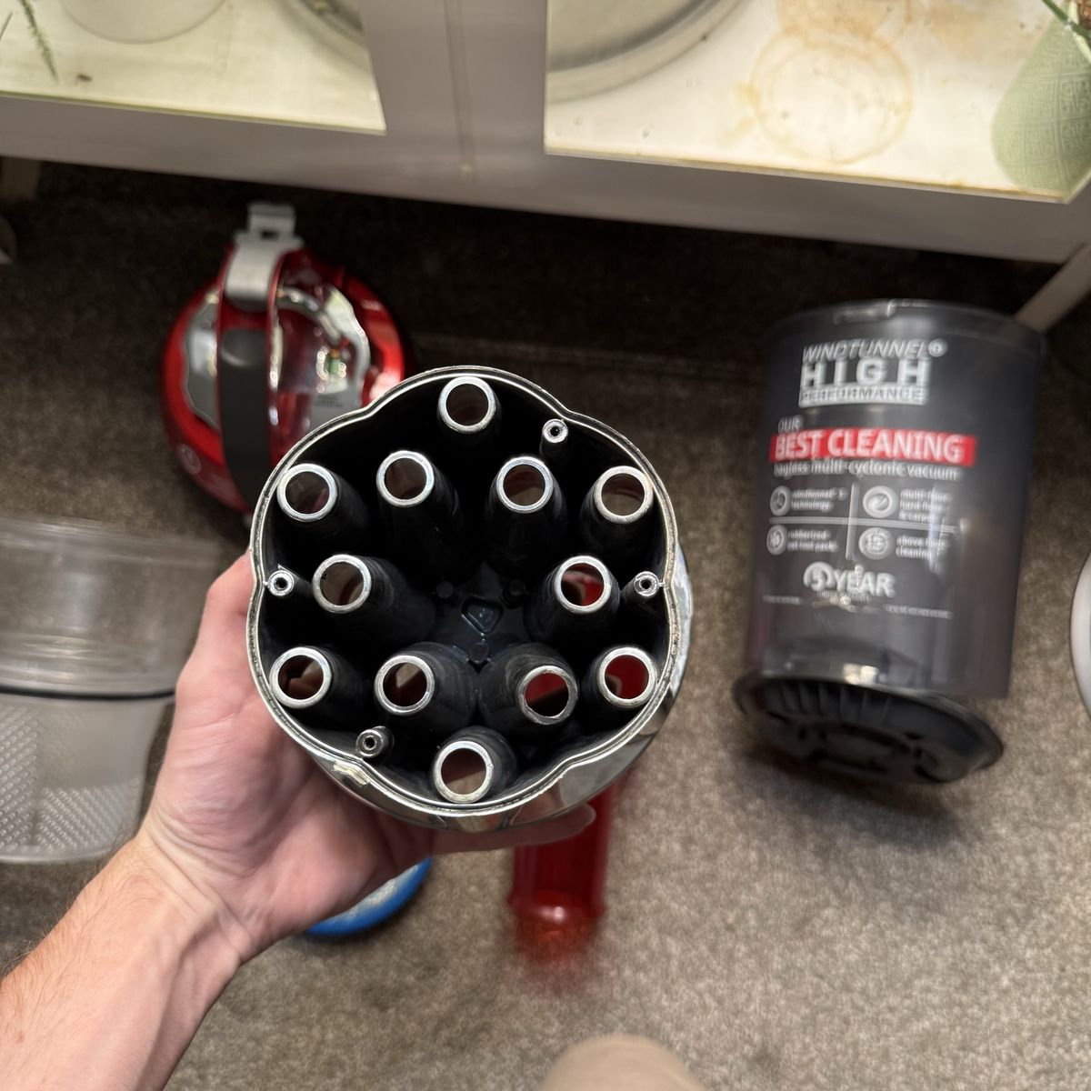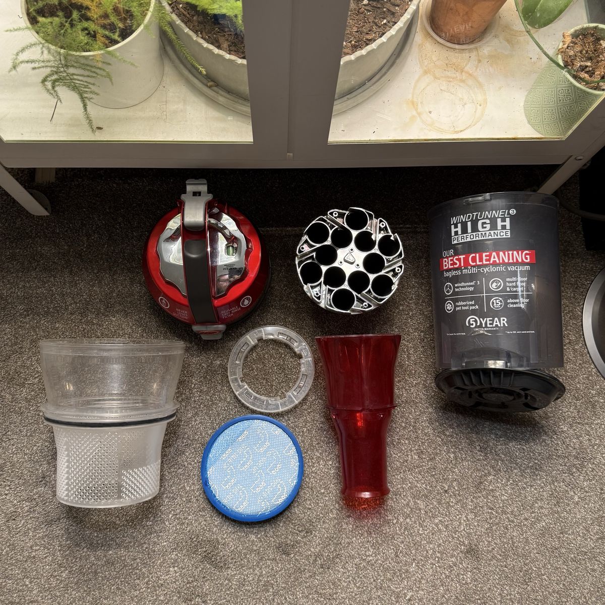 -This Hoover has a multi cyclone pack similar to Dysons that separates the fine dust before it gets on the very good quality pre motor filter This has been fully serviced by me, the bin and cyclone have been disassembled washed, the filter and Brushroll have been washed, all common issue spots addressed. (SEE PICS 2,3,8)
