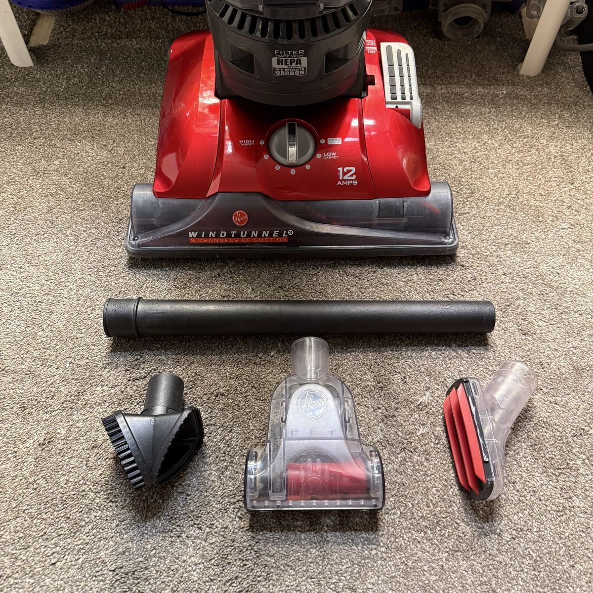 This is a good condition Hoover windtunnel high performance vacuum, it’s fully serviced and come with attachments and a warranty. This is MUCH better than sharks offerings and a lot others.