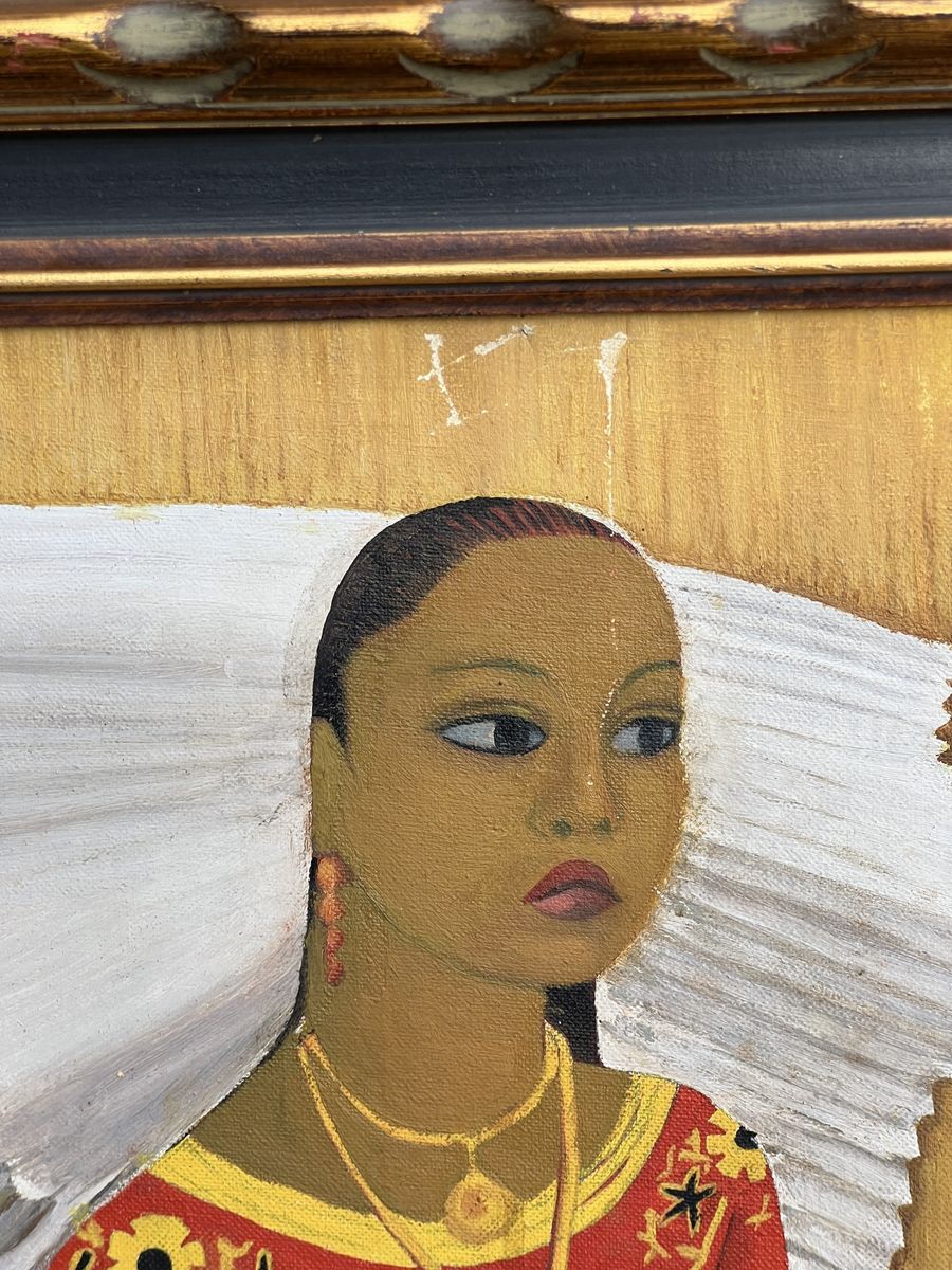 VenmoInteresting print of painting by Miguel Covarrubias. Vintage print and frame. Some damage to the canvas, see photo. Framed size 20.5x24.5 Pick up in Draper. Pet and smoke free home. Cash or Venmo. $40.