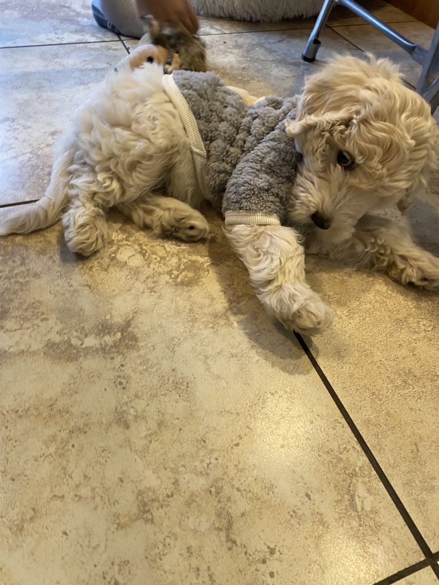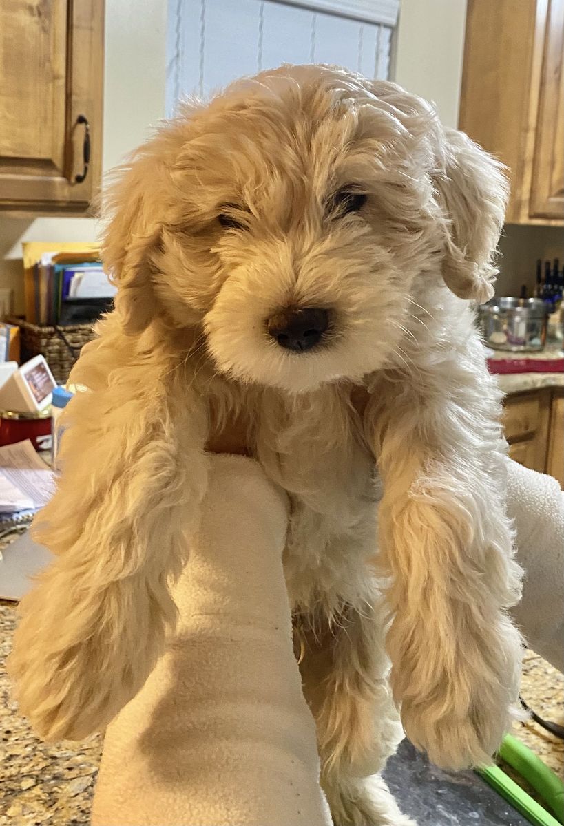 VenmoAdorable and very intelligent puppy raised in our home with lots of love and daily interaction with children and adults. This little guy is very smart, well-socialized, friendly, and already TRAINED. Our puppy was born on December 20, 2025, and—most importantly—he is already potty-trained to go outside! So you don't have to worry about the hard part of raising a puppy He is very smart and highly trainable. You will see how fast he learns. He has already received his vaccinations, deworming, and a health check-up, so you don't have to worry about that either... I will provide you with his complete medical history. Mini Goldendoodles are very popular, affectionate, gentle and calm dogs; they typically weigh between 15 and 35 pounds. They are known for no shedding and for being HYPOALLERGENIC. These dogs are excellent family companions. Mom weighs around 30 pounds. Dad weighs around 25 pounds. He comes with a complete go home package that includes… Dog bed and favorite blanket, toys, food bowls, brush, shampoo, lotion deodorizer, bag of food and bag of treats.